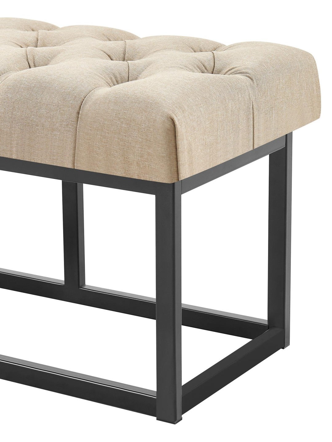 Bænken har en robust ramme lavet af matsort metal. Krydstag gør den så stabil, at den sikkert kan belastes med op til 150 kilo. Følsomme gulve bliver ikke beskadiget takket være gulvbeskytterne.