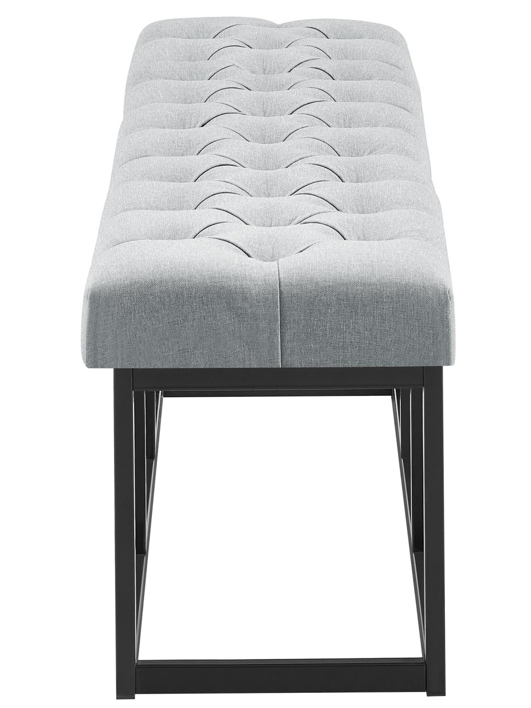Bænken har en robust ramme lavet af matsort metal. Krydstag gør den så stabil, at den sikkert kan belastes med op til 150 kilo. Følsomme gulve bliver ikke beskadiget takket være gulvbeskytterne.