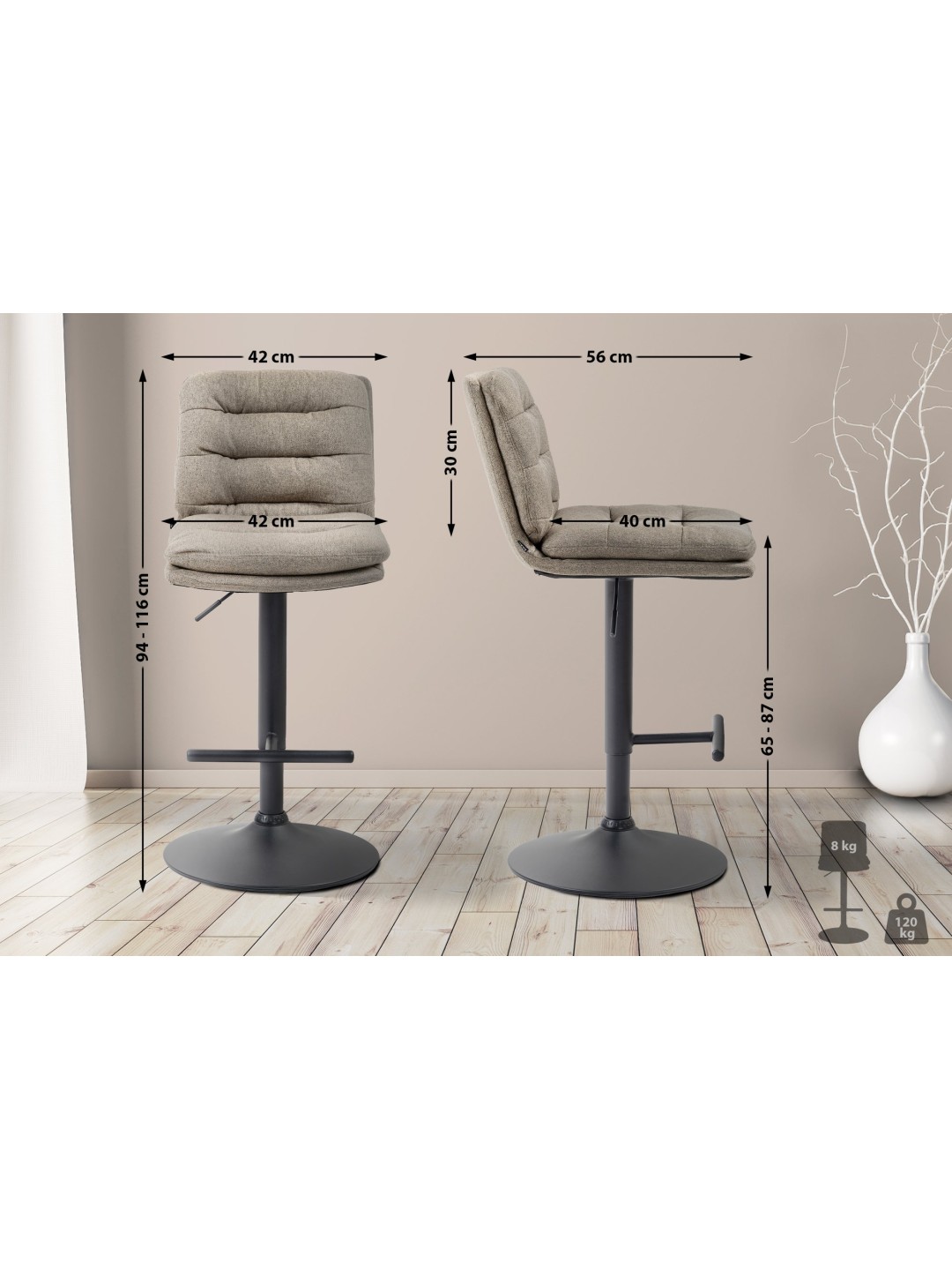 Barstol Damar stof, taupe