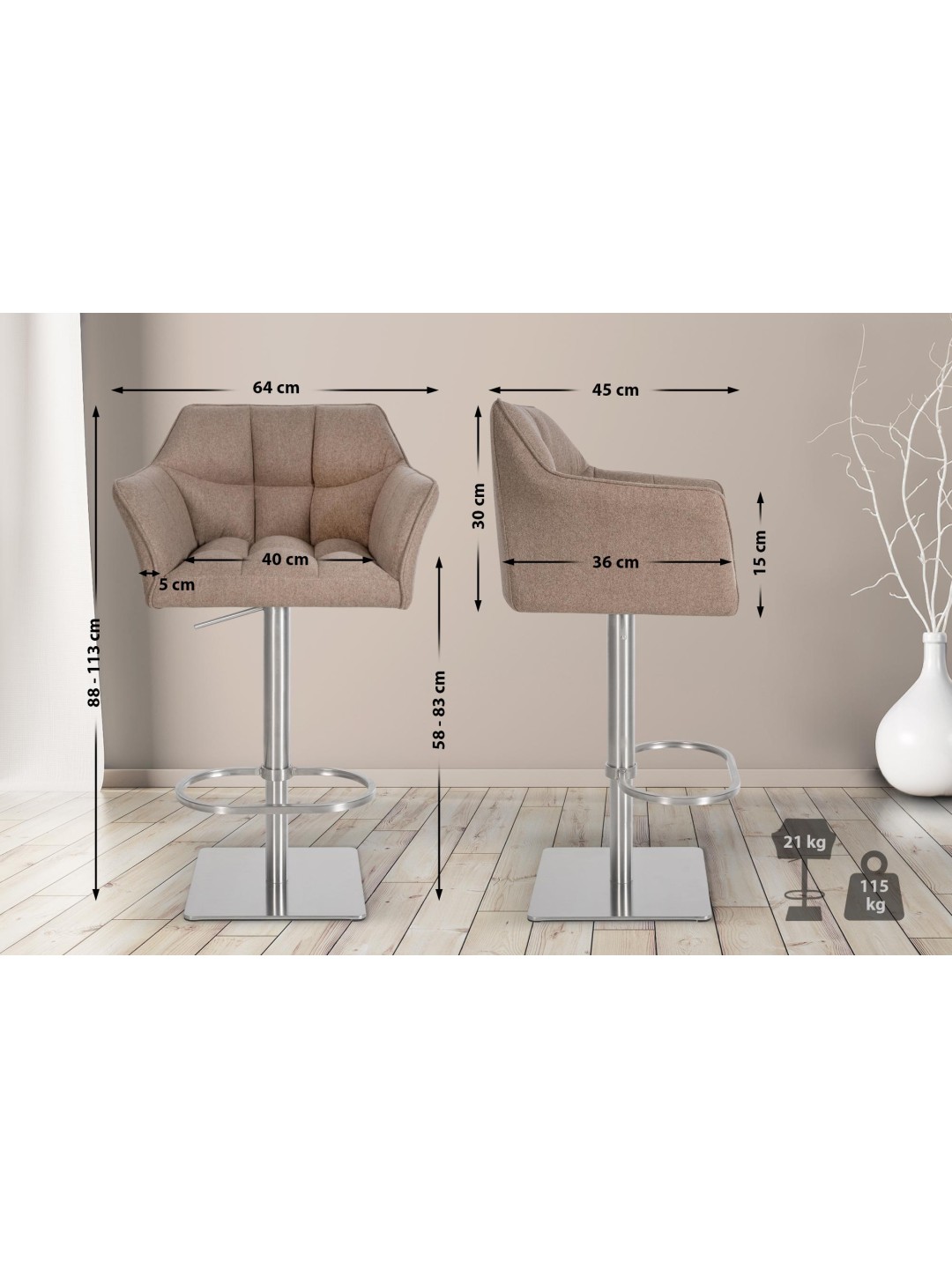 Rammen i rustfrit stål kan holde op til 150 kilo og giver taburetten et moderne touch. Damaso bordstolen er den perfekte tilføjelse til barer, køkkenborde eller lounger og tilbyder maksimal siddefornøjelse i et stilfuldt design.