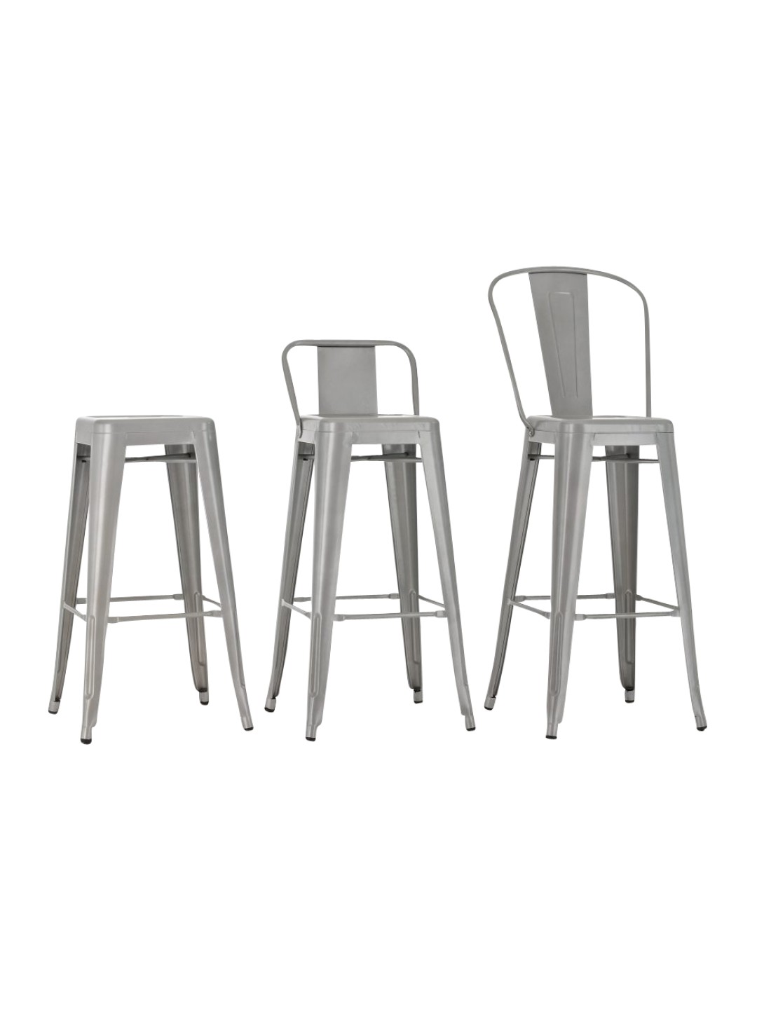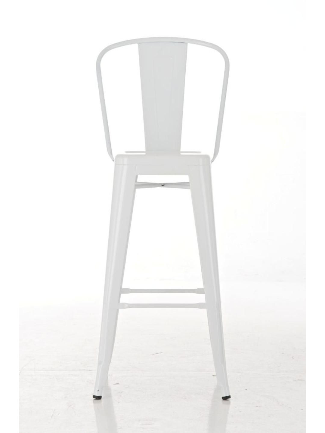 Denne barstol lavet af pulverlakeret metal viser altid ægte stabilitet. Der er tværstænger både mellem benene og under sædet, som sikrer en høj grad af stabilitet - førstnævnte fungerer også som en behagelig fodstøtte.