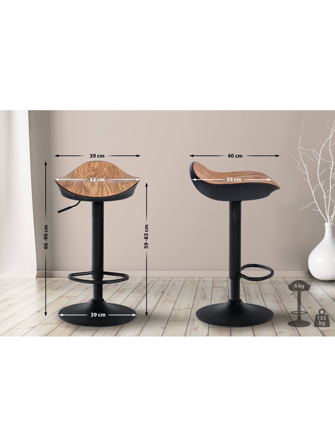 Alisson barstol imponerer med sin moderne og ergonomiske form, som passer perfekt til kroppen. Sædebetrækket er lavet af et behageligt blødt og struktureret kunstlæder. Denne model er trinløst højdejusterbar takket være dens gaslift og tilbyder derfor en universelt anvendelig løsning, der passer til alle skrankehøjder. Fødderne kan hvile komfortabelt på den integrerede fodstøtte. Sædet kan drejes 360° og giver dig mulighed for at sidde komfortabelt i timevis. Takket være plastoverfladen er denne bordskammel nem at rengøre. Trompetbunden af ​​metal giver barstolen et elegant look. For at forhindre skader på gulvet er der fastgjort en gummiring under foden.
