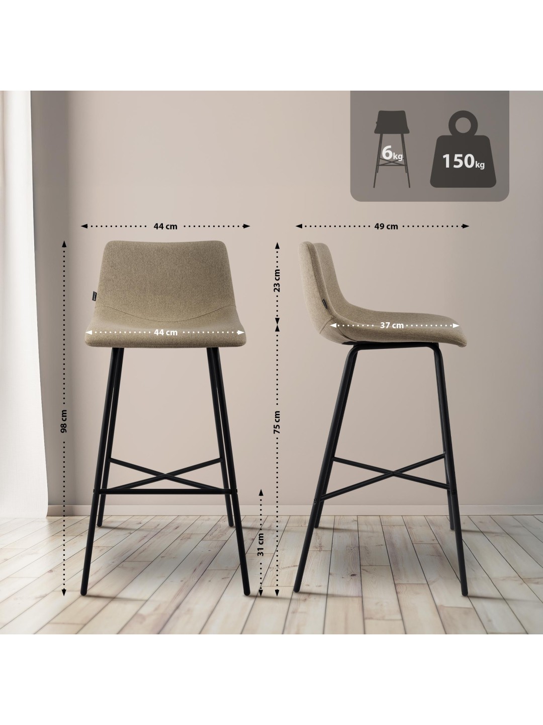 Barstol Altona stof, taupe