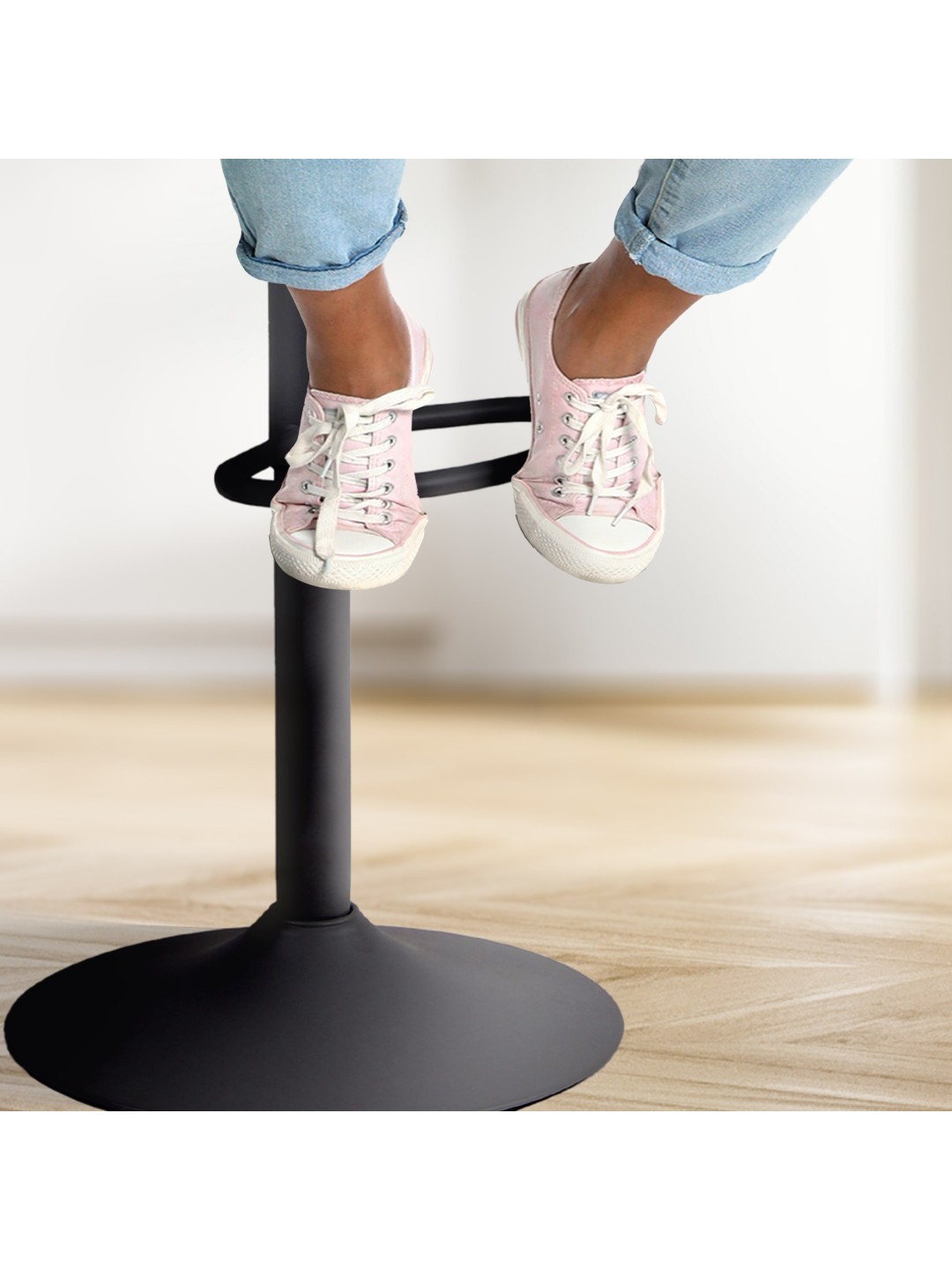 Designet suppleres af metaltrompetbasen og giver bordstolen sin stabilitet. Stellet er desuden udstyret med en gulvbeskytter, som forhindrer ridser og skader på gulvet.