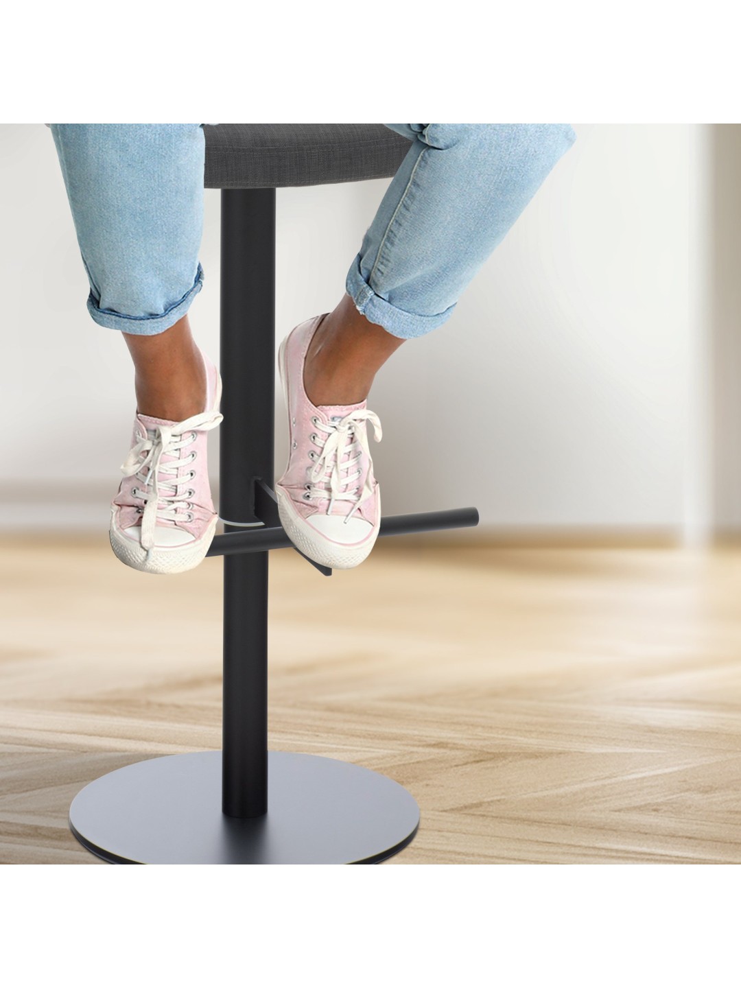 Den integrerede fodstøtte giver ekstra siddekomfort. Endelig er barstolen udstyret med gulvbeskyttere, så selv følsomme overflader beskyttes.
