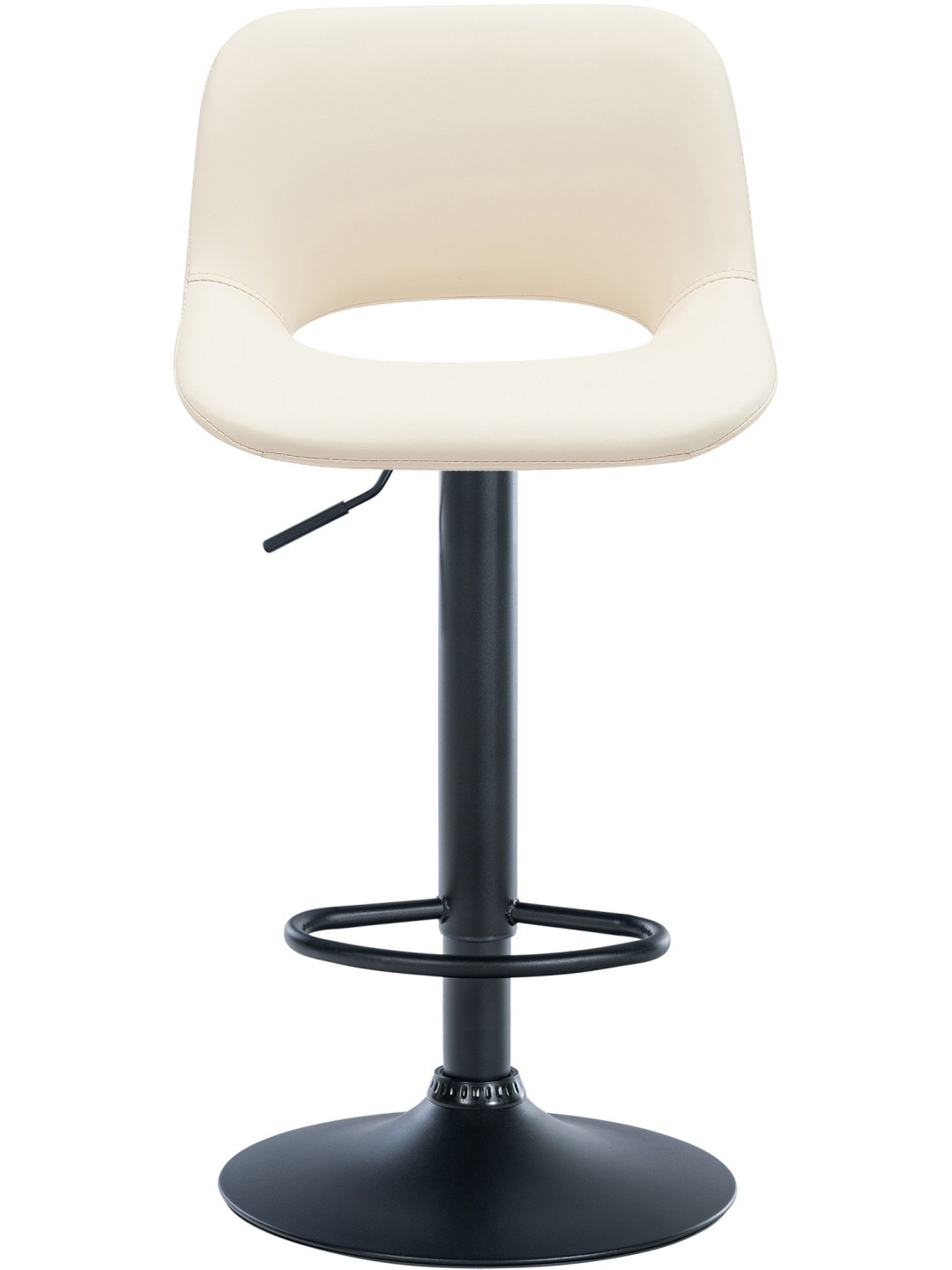 Barstolen har behagelig polstring over sæde og ryglæn, som gør det muligt at sidde komfortabelt selv i længere tid. Polstret er beklædt med et let pleje betræk af syntetisk læder.
