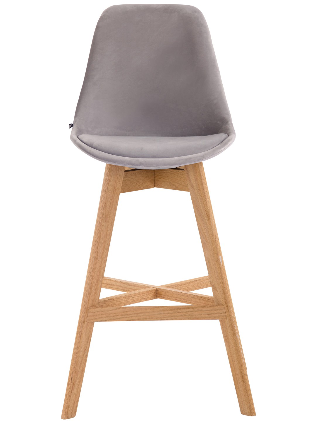 Barstolen Cannes, et solidt og smukt sæde til hverdagsbrug. Det giver ethvert rum et eksklusivt udseende og imponerer ikke kun med sine fremragende siddeegenskaber, men også med sit moderne design. Du kan vælge sædet mellem fire forskellige udgaver, hvad enten det er som sædeskal af robust plast med behageligt imiteret læderbetræk i siddeområdet eller som et komplet stof- og imiteret læderbetræk eller fløjlsbetræk med polstring i sæde- og rygområdet. Ryglænet giver sammen med fodstøtten den nødvendige støtte. Egetræsstellet er desuden stabiliseret af fodstøtten og de to tværstivere og understøtter det elegante sæde. Stellet fås i flere farver og kan derfor integreres i en lang række møbler. Denne bordstol vil perfekt komplementere dit køkken, bar eller opholdsstue - alt du skal gøre er at vælge de rigtige farver fra vores bestillingstilbud.