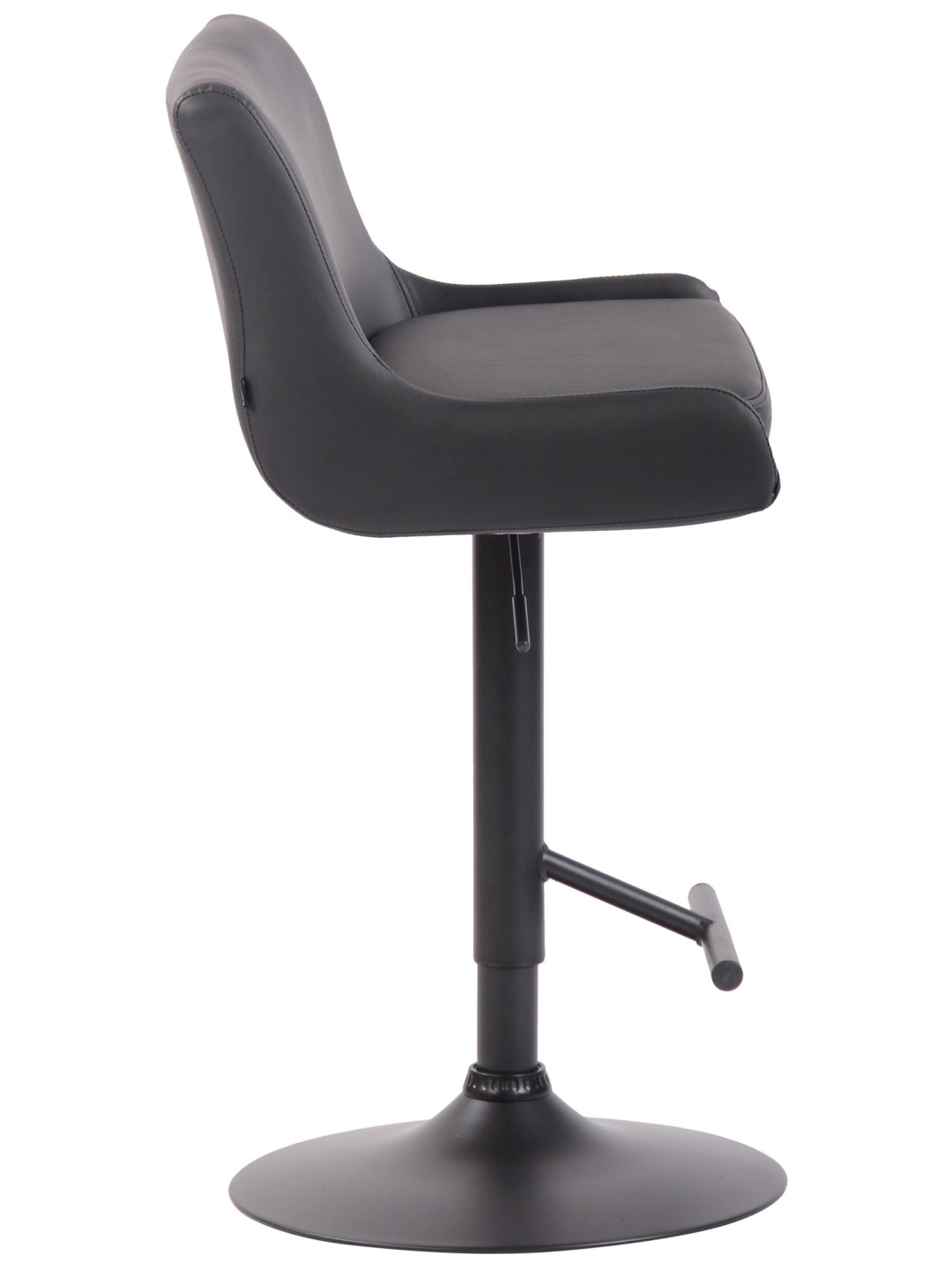 Denne stol imponerer med sit stilfulde design. Sædet er beklædt med et let pleje betræk af kunstlæder. Ved hjælp af gasliften kan denne model justeres trinløst til den ønskede højde, hvilket gør den ideel til enhver diskhøjde. Fodstøtten, der sikrer en rigtig god siddekomfort, kan justeres synkront med sædets højde. Sædet kan drejes 360° med fodstøtten. Rammen er lavet af enten krom-look metal eller sort metal. Der er også gulvbeskyttere under trompetbunden for at forhindre, at gulvet bliver ridset.