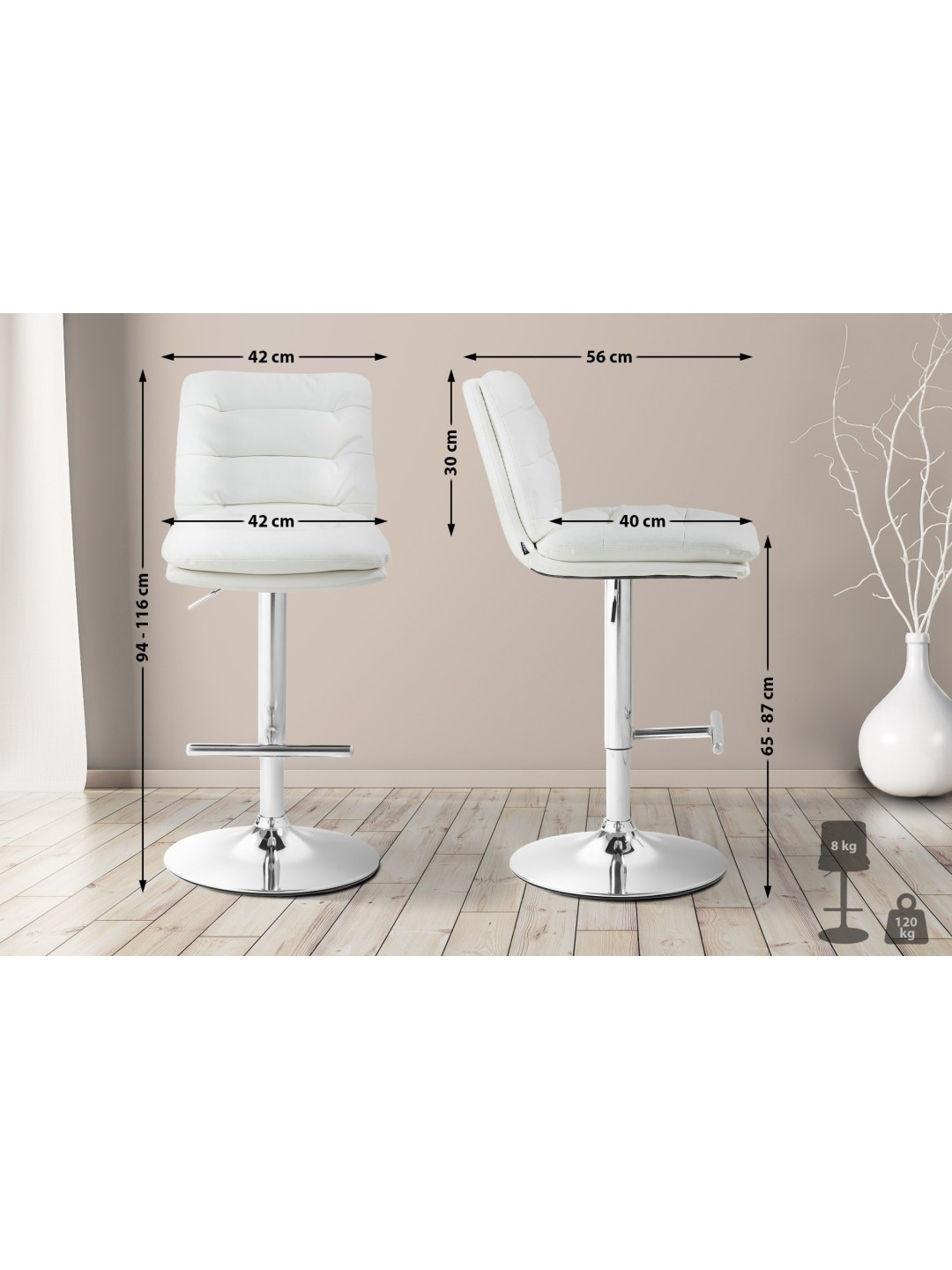 Barstol Damar kunstlæder krom, hvid