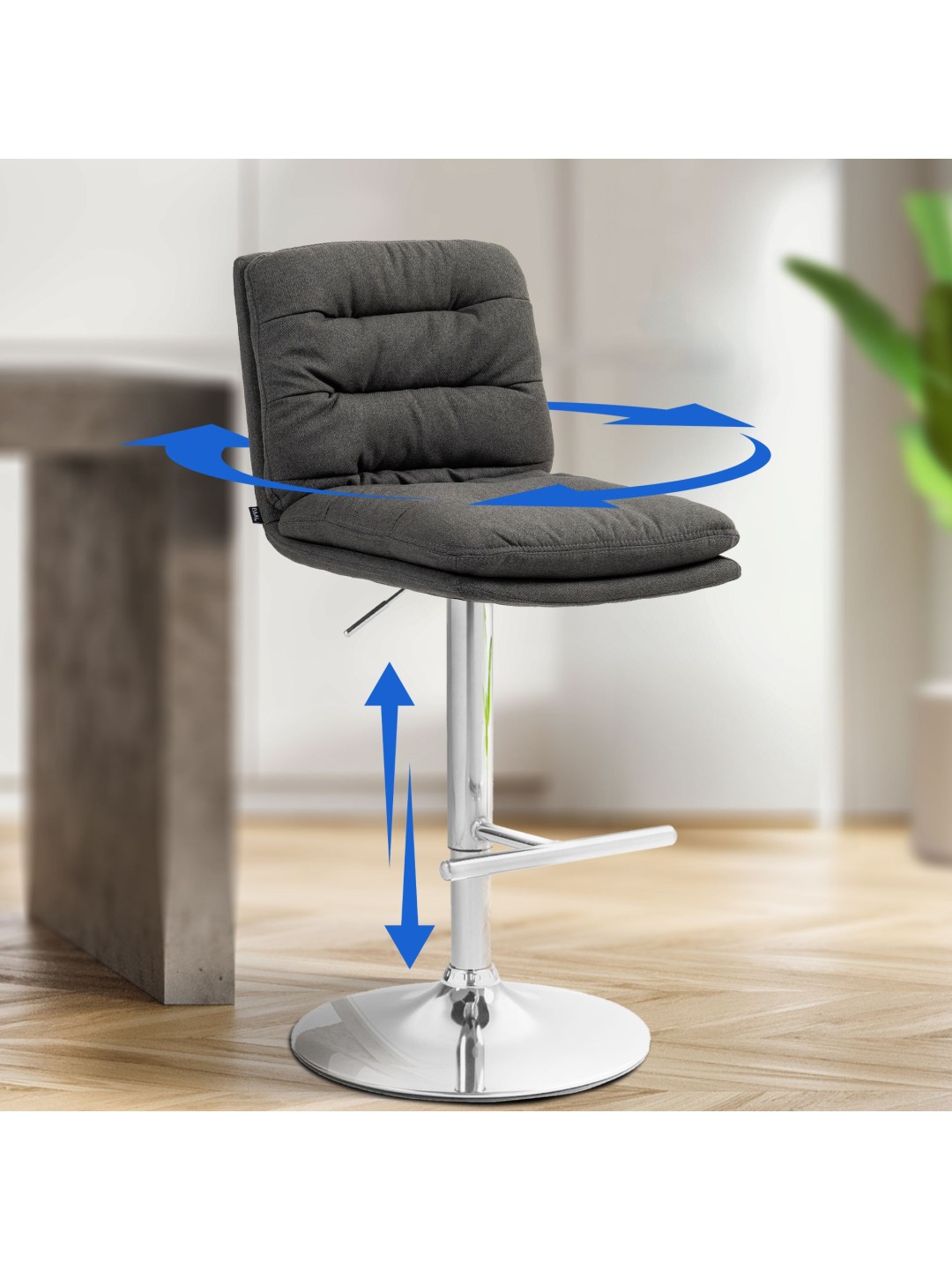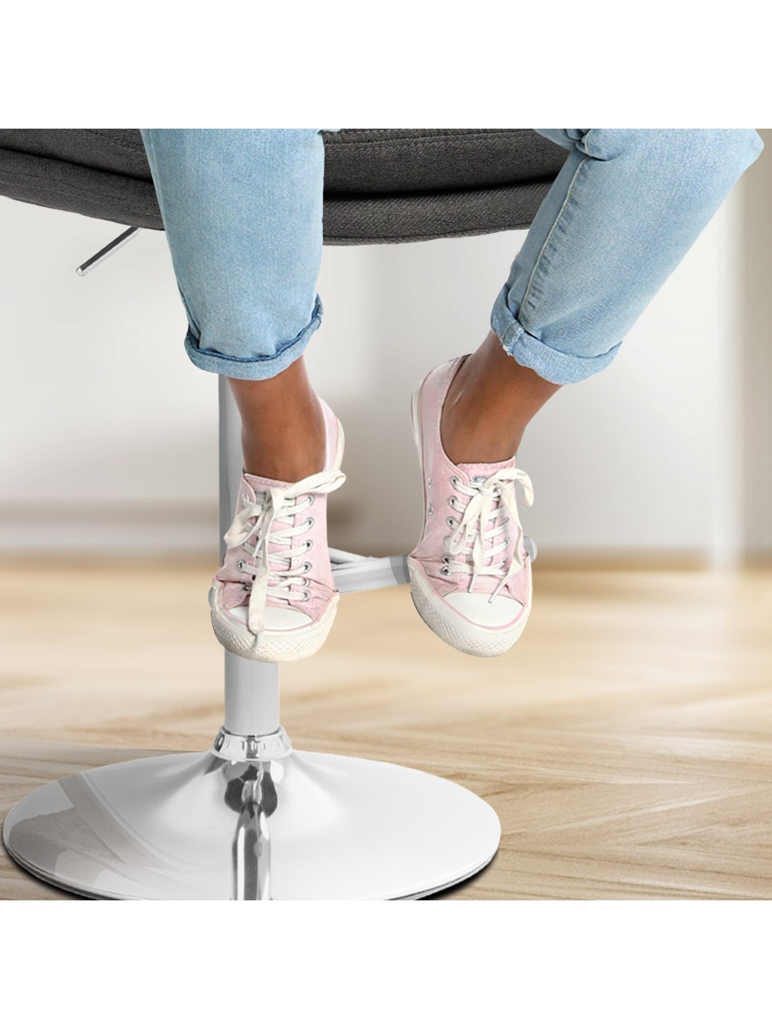 Skamlens stel og det moderigtige betræk giver taburetten et elegant udseende. Sædet er beklædt med et slidstærkt stofbetræk. Metalrammen er højdejusterbar og 360 graders rotationsfunktionen sikrer masser af bevægelsesfrihed.