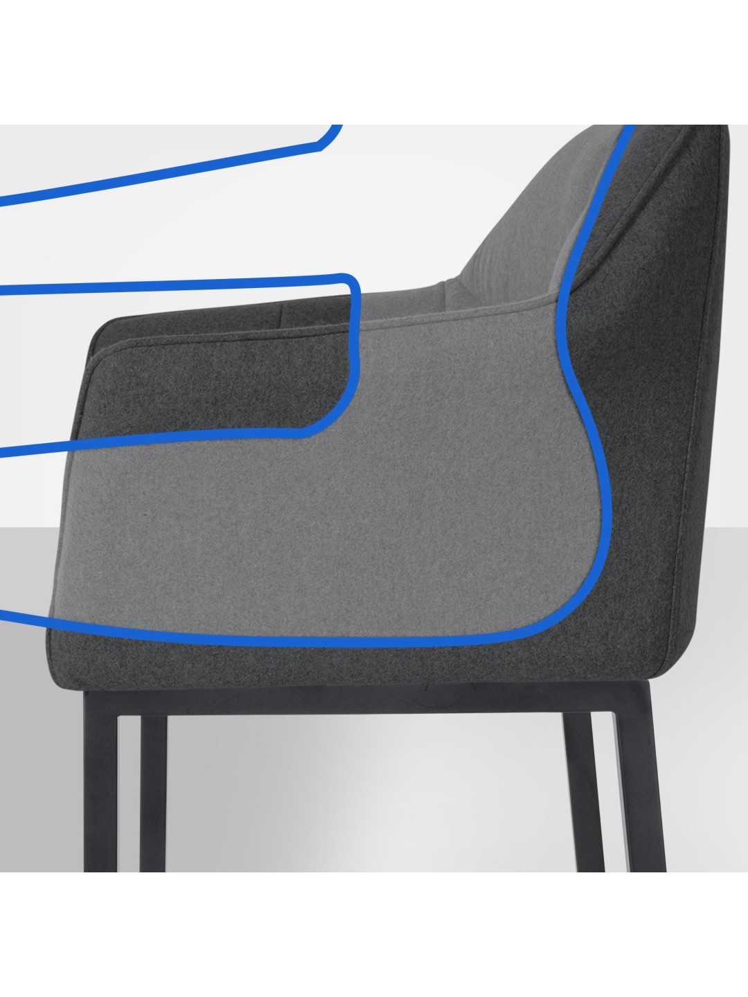 Skamlen skylder sit smukke udseende til den stilfulde kombination af moderne filtbetræk og det firbenede metalstel.