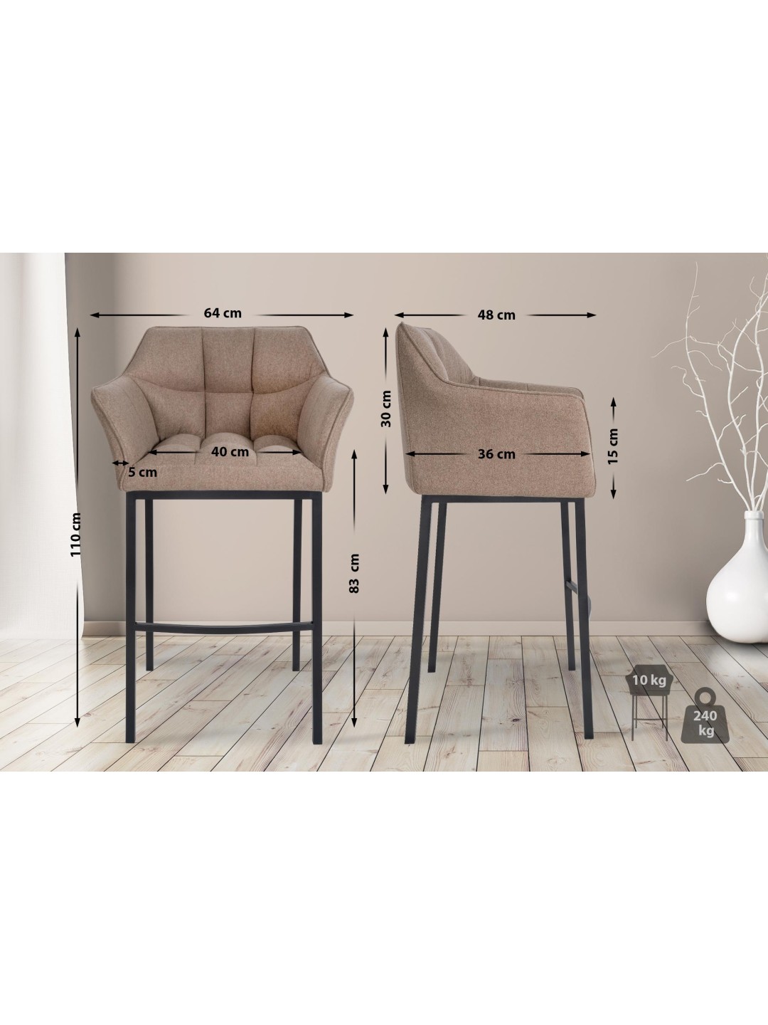 Barstolen Damaso imponerer med sit moderne design og særligt høje spændstighed. Med en sædehøjde på 83 centimeter er barstolen ideel til de fleste diske.