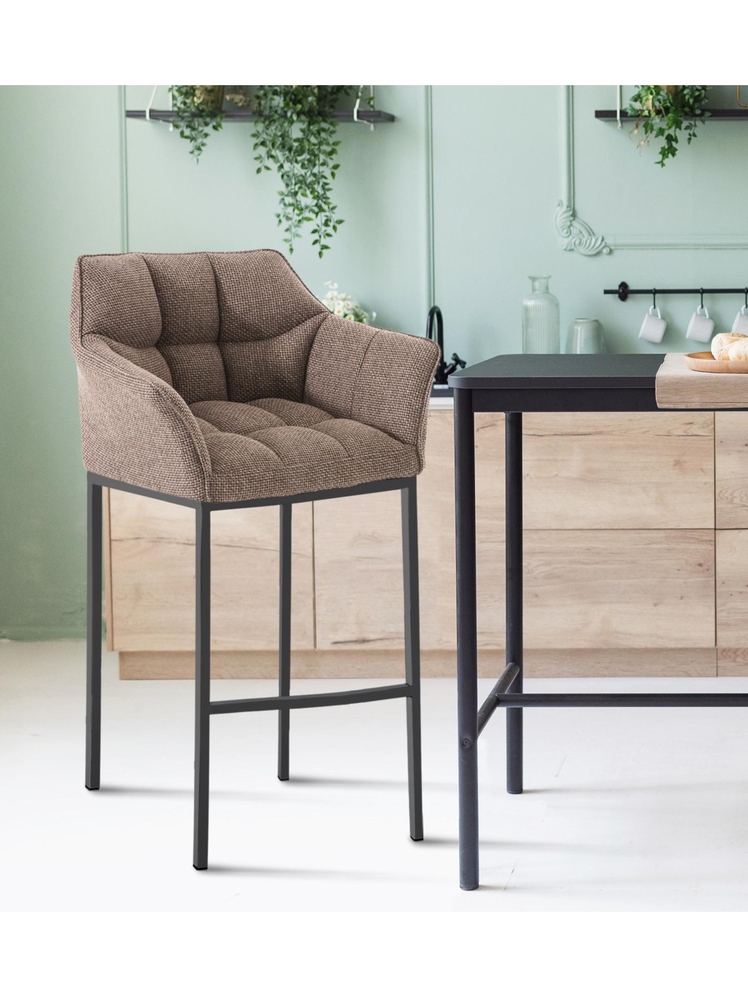 Barstol Damaso B stof med 4 fods stel, terrabrun