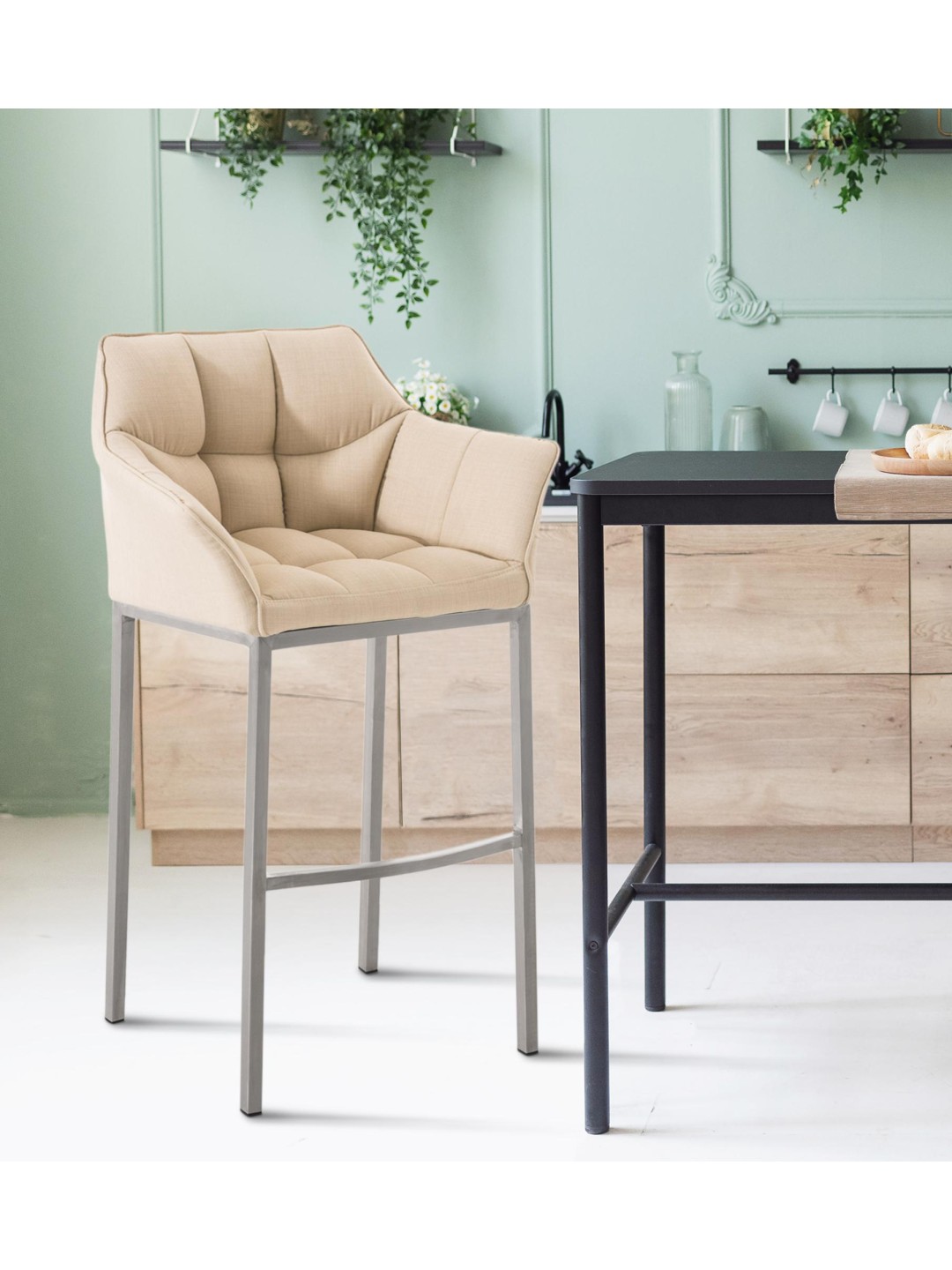 Barstol Damaso E stof med 4 fods stel, creme