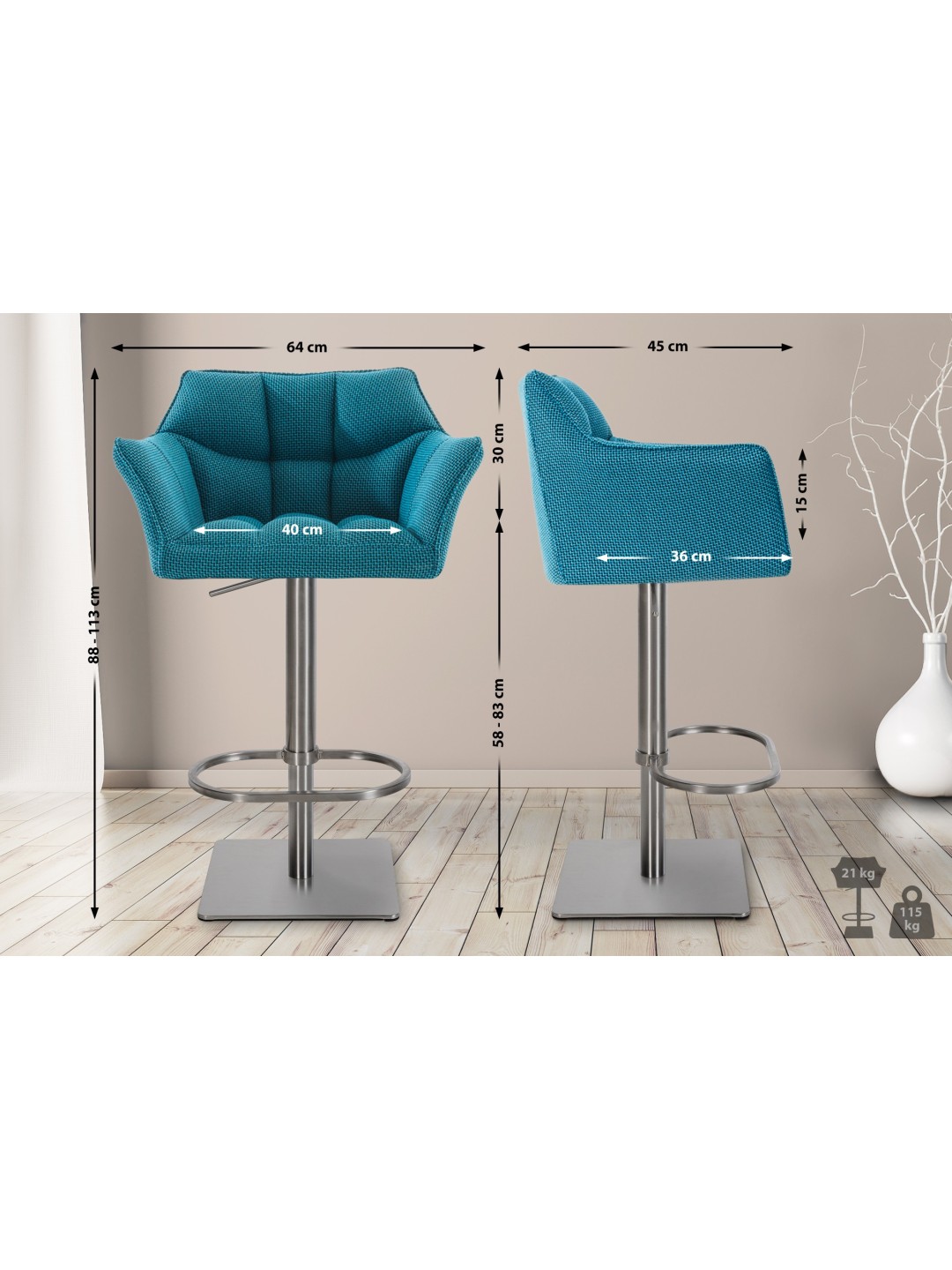 Barstol Damaso E stof, turkis