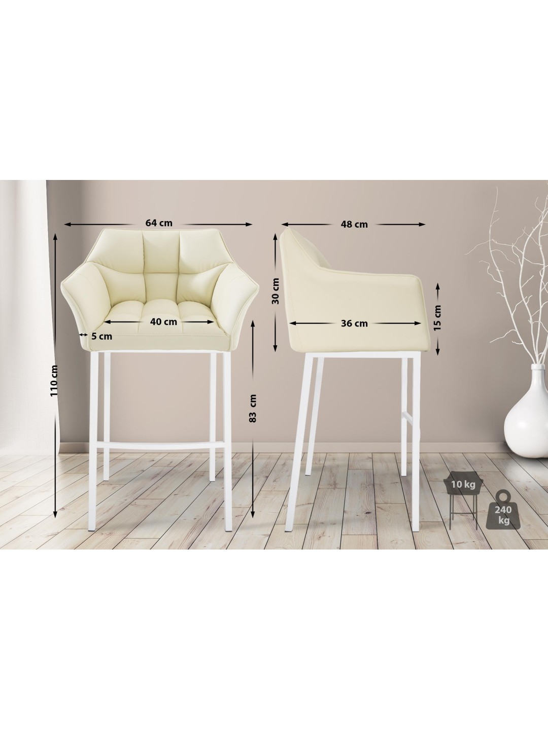 Barstolen Damaso imponerer med sit moderne design og særligt høje spændstighed. Med en sædehøjde på 83 centimeter er barstolen ideel til de fleste diske.