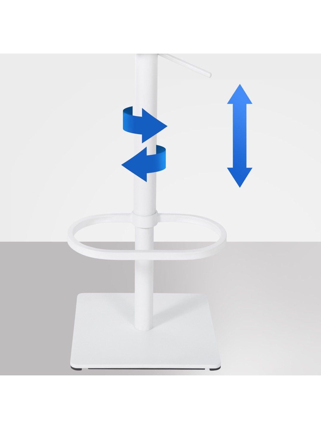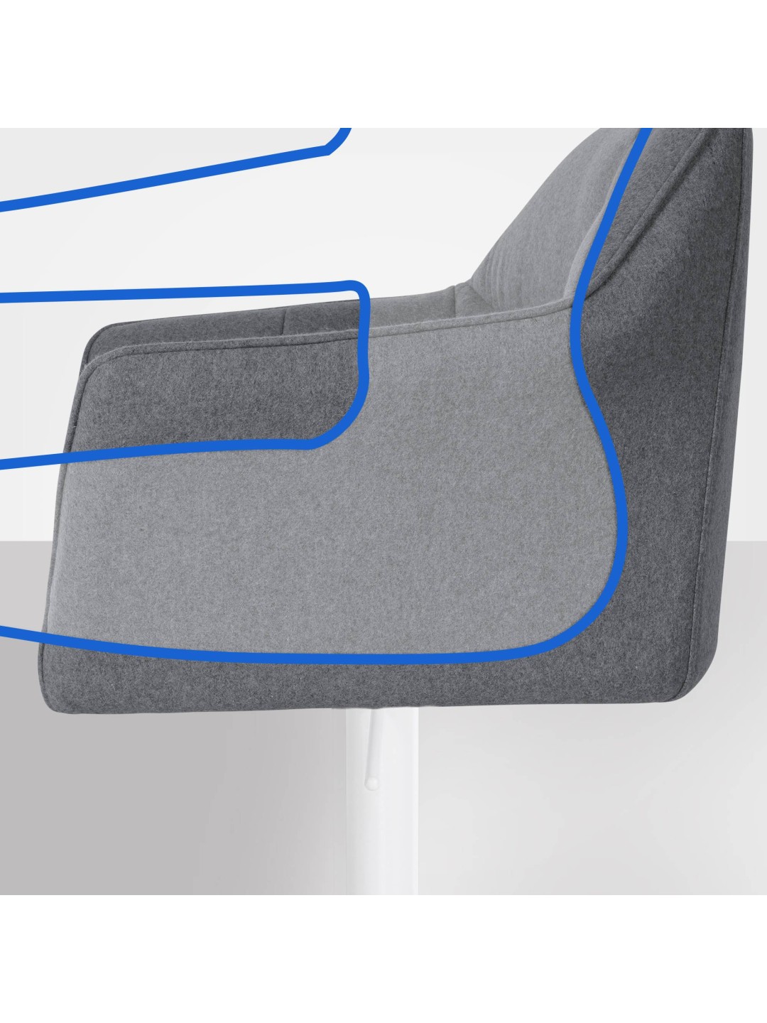 Ryglænet og armlænene giver ekstra siddekomfort og en afslappet holdning. Barstolen er trinløst højdejusterbar, så sædehøjden kan justeres til mellem 58 og 83 cm. 360 graders rotationsfunktionen giver mulighed for ubesværet bevægelse. Takket være den integrerede fodstøtte kan benene aflastes.