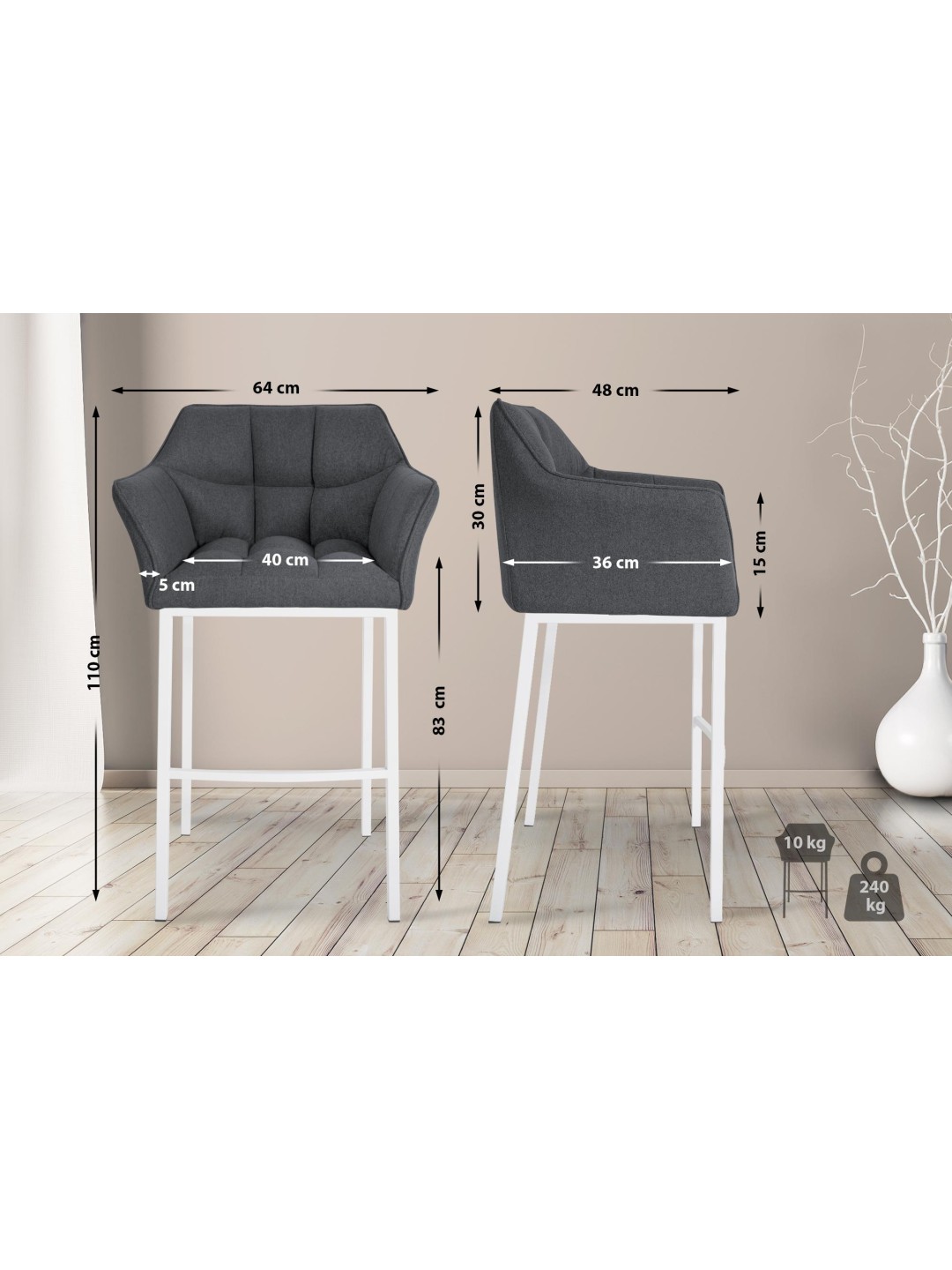 Barstolen Damaso imponerer med sit moderne design og særligt høje spændstighed. Med en sædehøjde på 83 centimeter er barstolen ideel til de fleste diske.