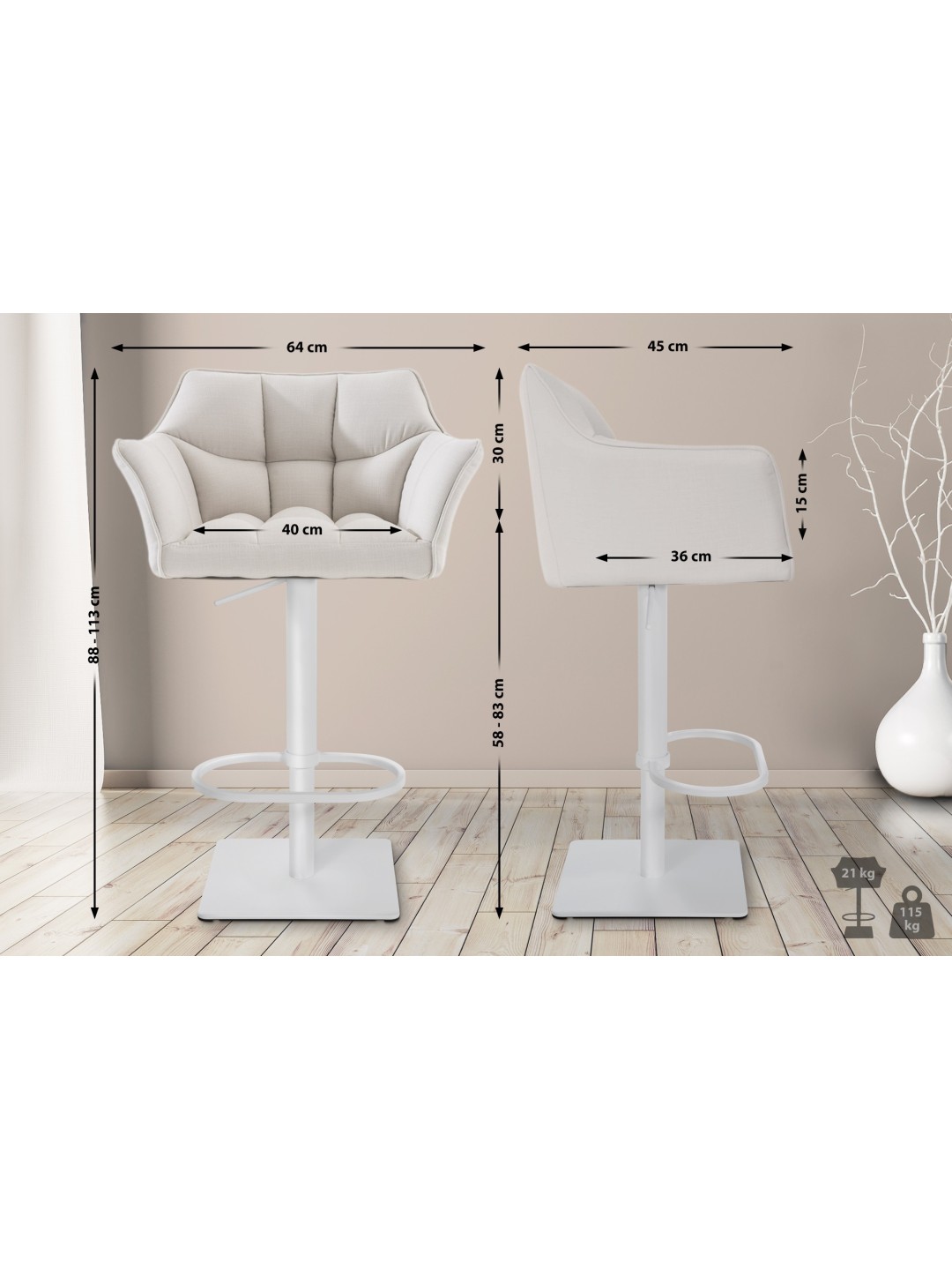 Barstol Damaso W stof, hvid