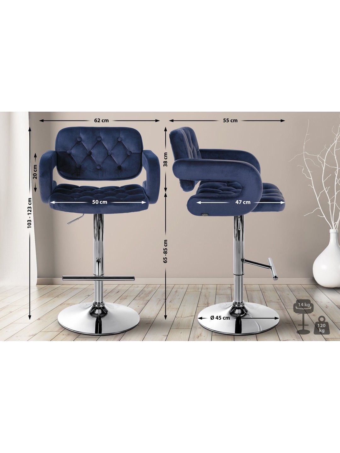 Barstol Dublin fløjlskrom, blå