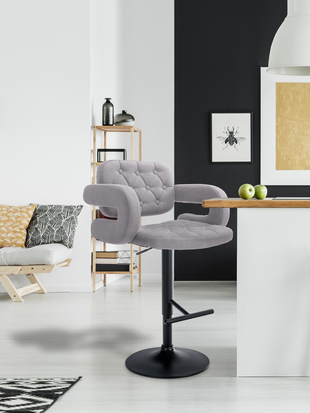 Barstolen Dublin legemliggør tidløs elegance og moderne komfort. Dens quiltede stofbetræk giver ikke kun et luksuriøst flair, men giver også en behagelig siddeoplevelse.