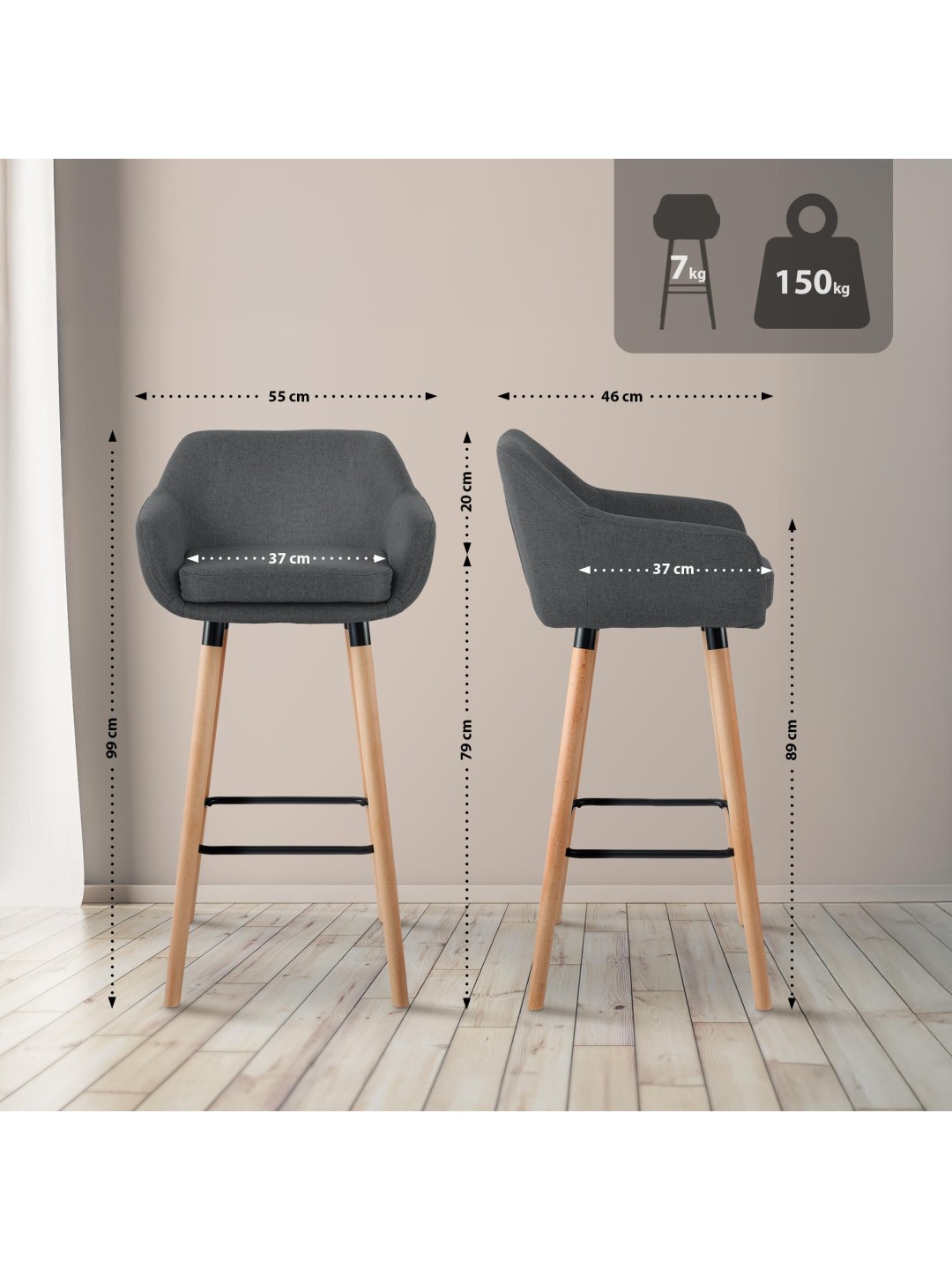 Barstol Grant stof, mørkegrå