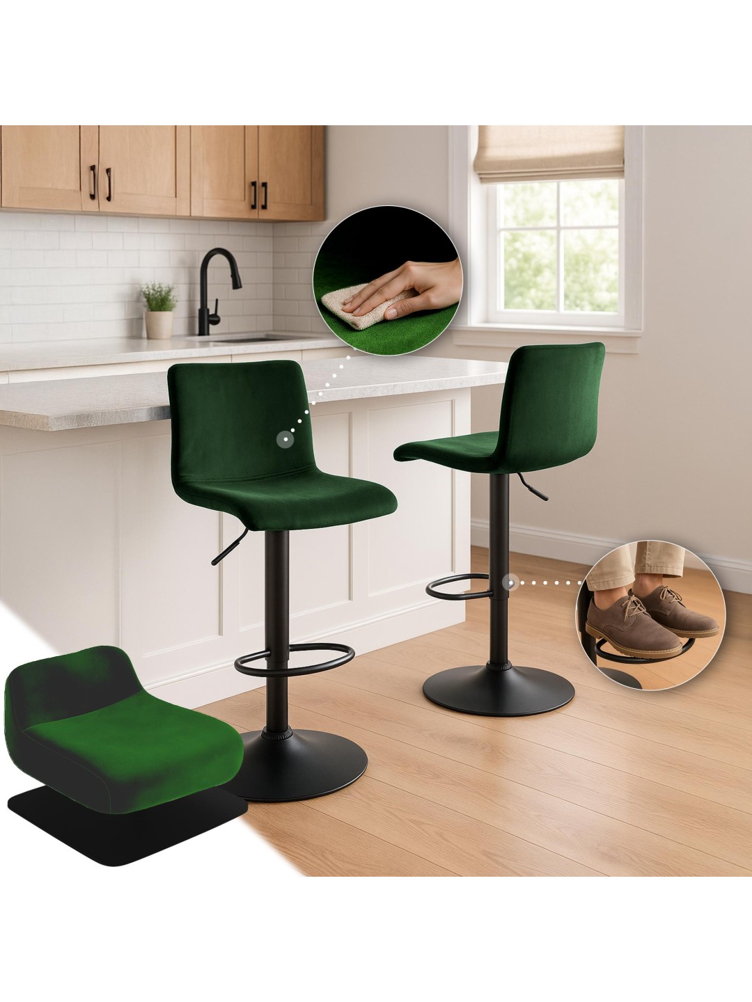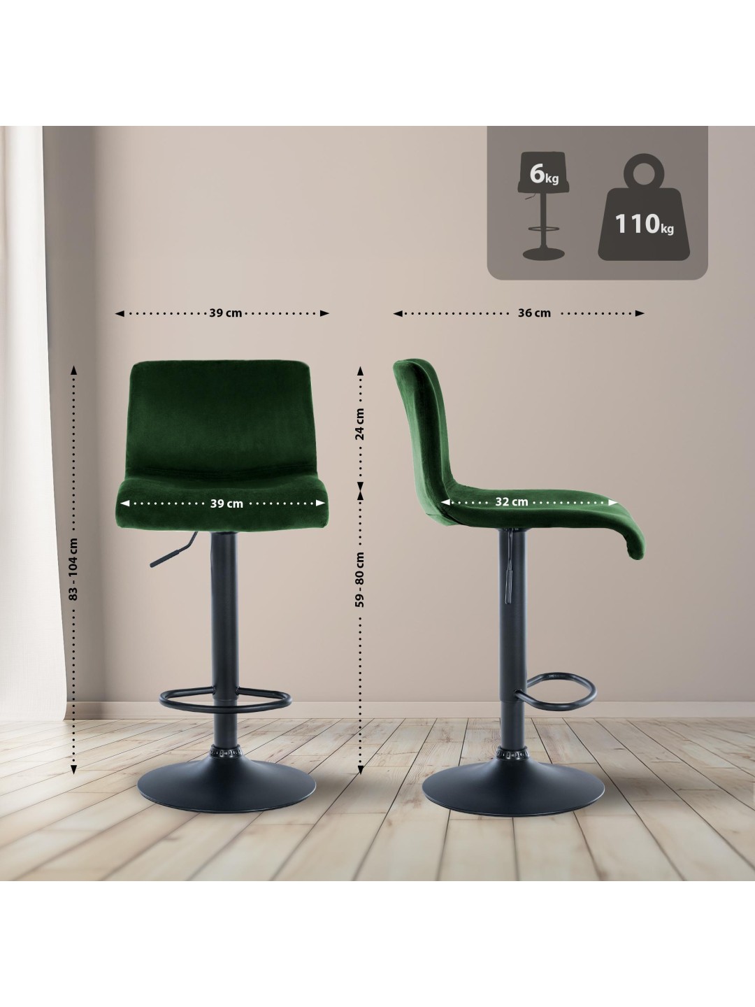 Barstol Hoover fløjl B, grøn