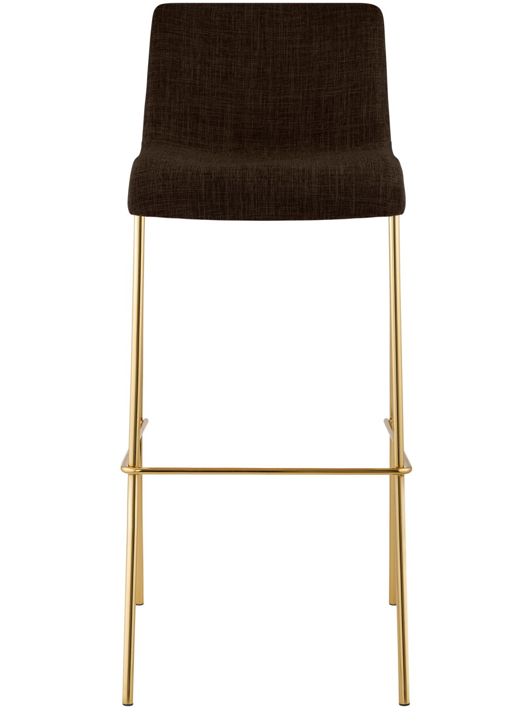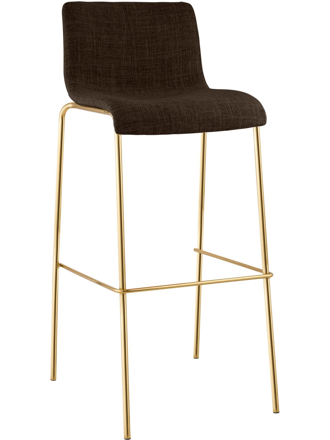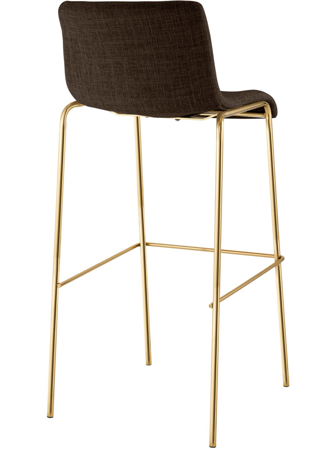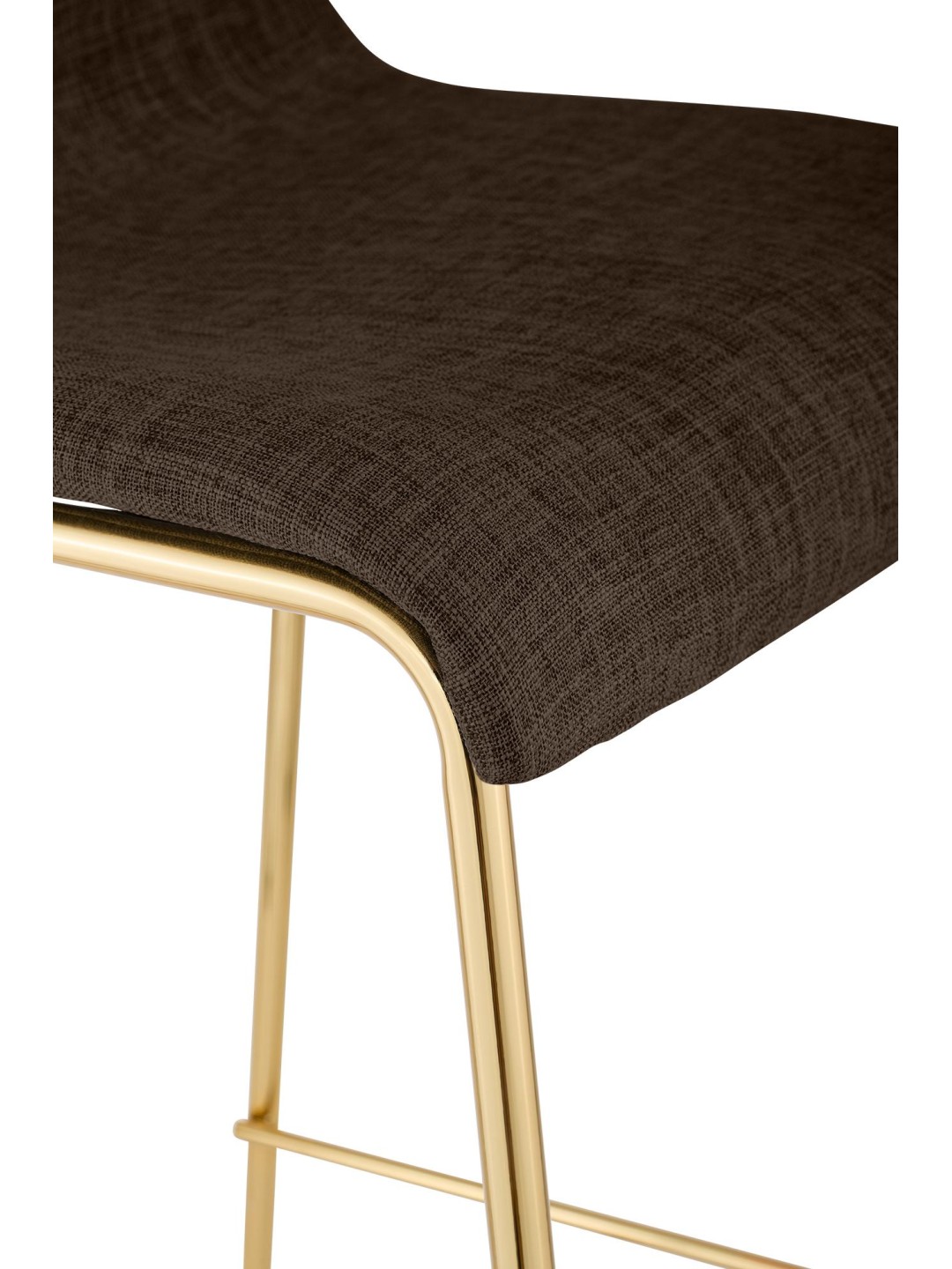 Sædeskallen og ryglænet er beklædt med stof sikrer behageligt at sidde og aflaster lænden. En integreret fodstøtte giver ekstra komfort. Taburetten skylder især sit smukke udseende til metalstellet i guldlook.