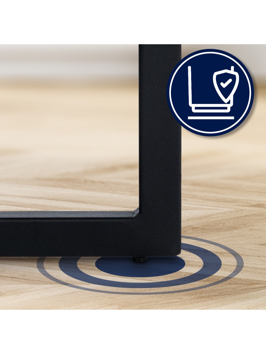 Den lige udkragede stel af pulverlakeret metal skaber et fantastisk blikfang, og den lille gyngen i sædet opfattes som meget behagelig. En integreret tværstang fungerer som en behagelig fodstøtte, mens ryglænet på sædet understøtter det nederste rygområde. Sæde og ryglæn er generøst polstret og har et stilfuldt fløjlsbetræk.