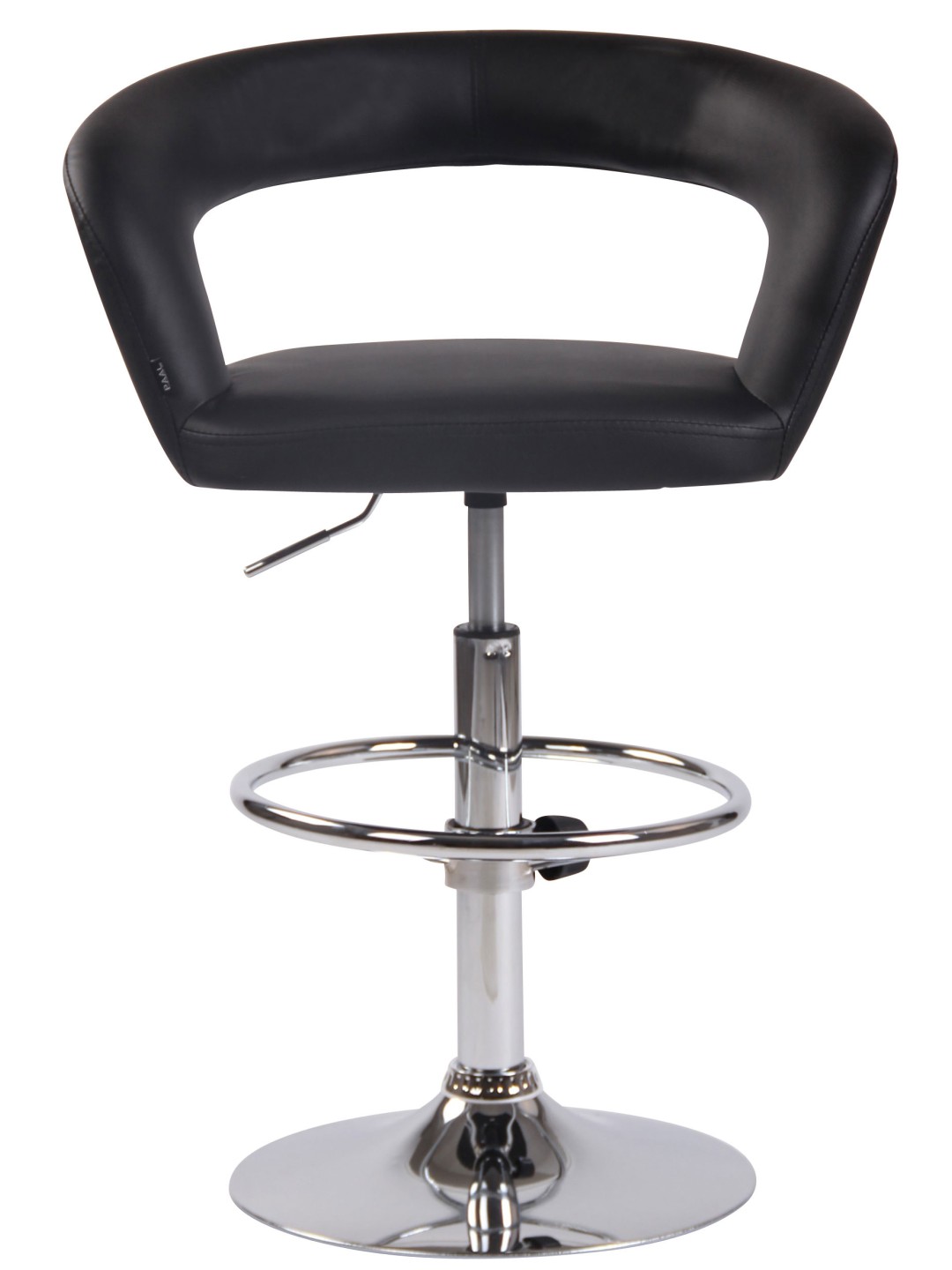 Denne barstol er et solidt og smukt sæde til hverdagsbrug. Det polstrede sæde med ryglæn og fodstøtte gør det behageligt at sidde i længere tid. Bordskamlen er højdejusterbar ved hjælp af en gaslift og kan drejes 360°. Trompetbunden af ​​metal i krom-look er udstyret med en gulvbeskytter, der forhindrer ridser og skader på gulvet.