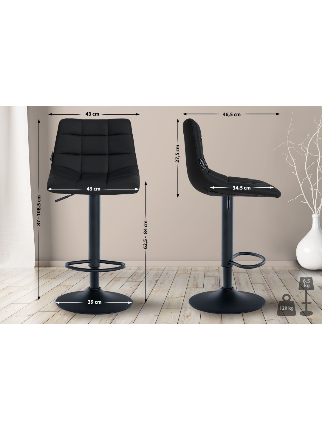 Total højde: 87 - 108,5 cm
