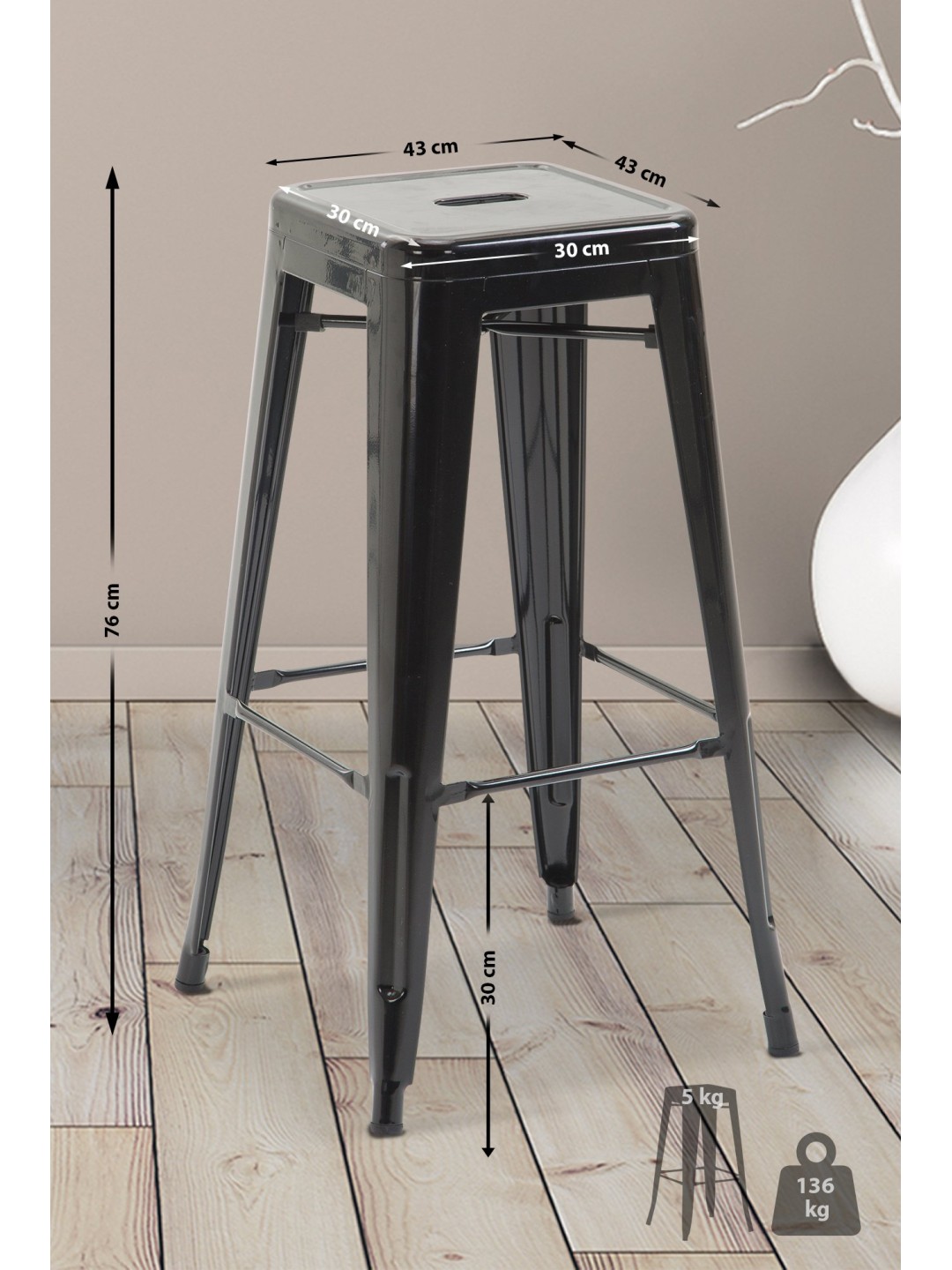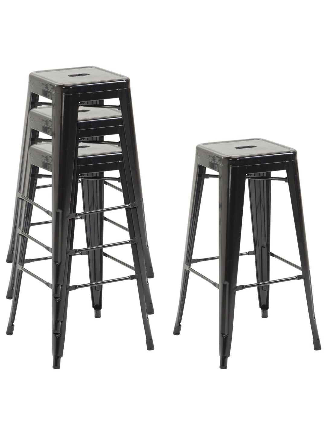 Denne barstol lavet af pulverlakeret metal præsenterer sig i et stabilt og moderne industrielt design. Tværstængerne mellem benene og under sædet garanterer enestående stabilitet, hvor førstnævnte også fungerer som en behagelig fodstøtte. Den plejevenlige overflade giver mulighed for ubesværet rengøring med en fugtig klud. En anden praktisk fordel er stabelbarheden af denne køkkentaburet, som giver mulighed for pladsbesparende opbevaring, hvis det kræves.