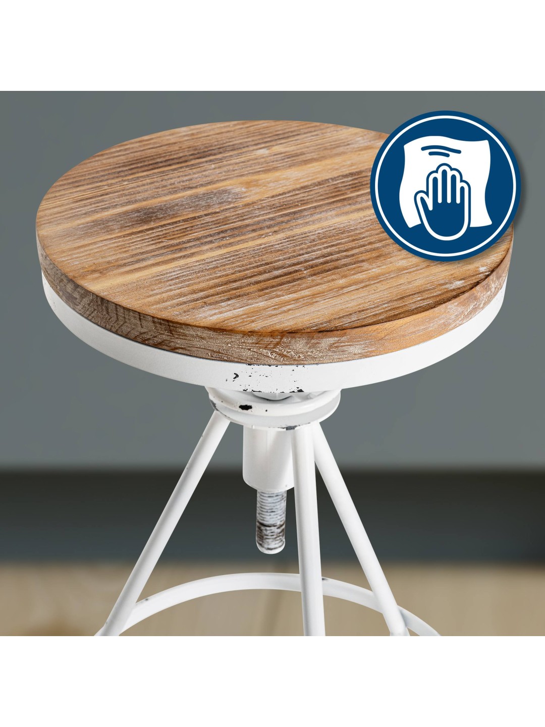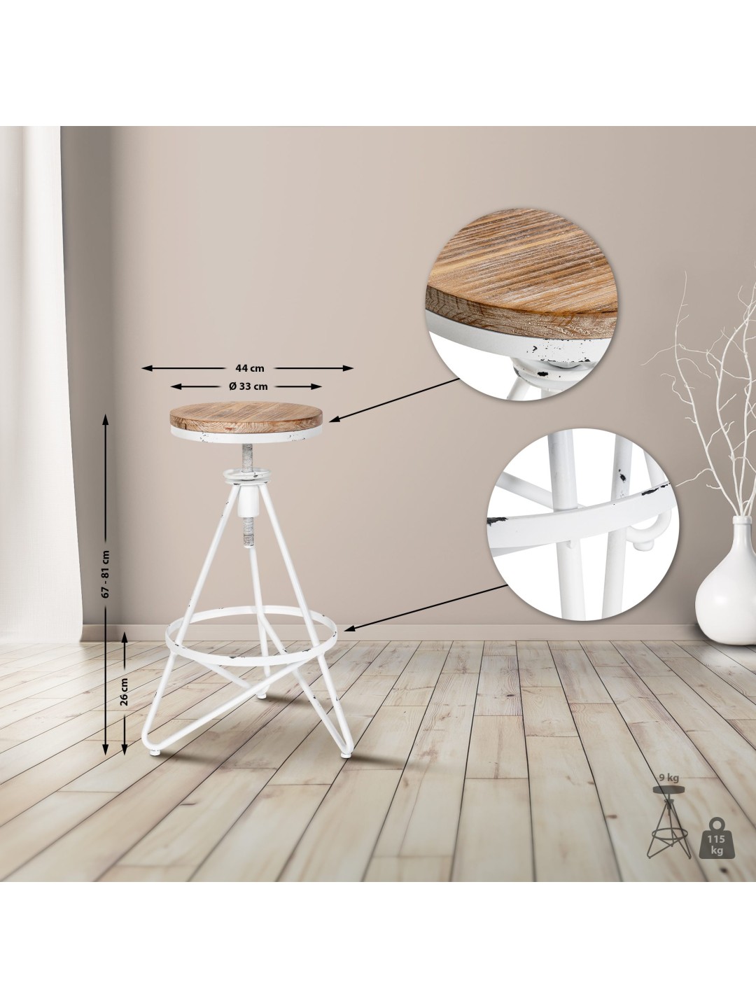 Kombinationen af et robust sæde lavet af massivt asketræ og et metalstel med patineret overflade giver denne barstol et slående look. Takket være den praktiske højdejustering kan bordskamlen fleksibelt justeres til forskellige bordhøjder. Ved at dreje sædet kan sædehøjden justeres fra 67 til 81 centimeter.