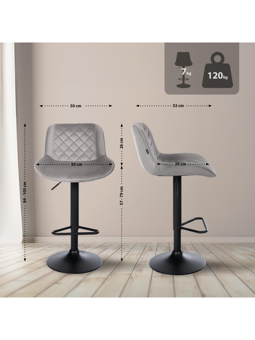 Barstol Kasson fløjl, grå