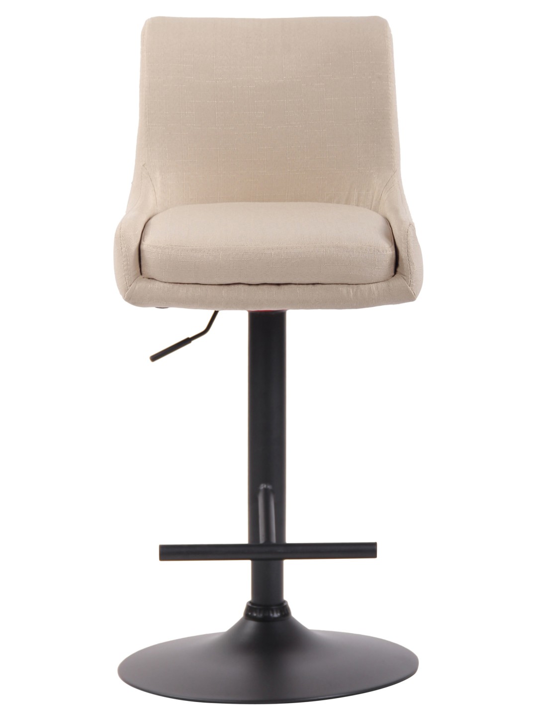 Denne stol imponerer med sit stilfulde design. Sædet er beklædt med et let pleje stofbetræk. Ved hjælp af gasliften kan denne model justeres trinløst til den ønskede højde, hvilket gør den ideel til enhver diskhøjde. Fodstøtten, der sikrer en rigtig god siddekomfort, kan justeres synkront med sædets højde. Sædet kan drejes 360° med fodstøtten. Rammen er lavet af enten krom-look metal eller sort metal. Der er også gulvbeskyttere under trompetbunden for at forhindre, at gulvet bliver ridset.