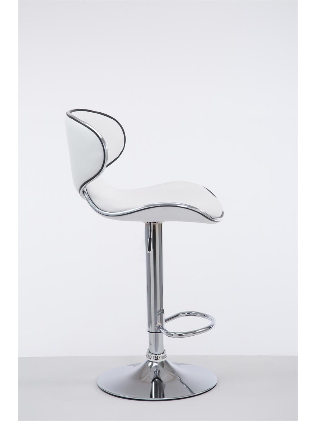 Denne barstol kombinerer komfort og design på den bedste måde! Den er lavet af robuste materialer: sædet er betrukket med let pleje i kunstlæder og let polstret. Ved hjælp af en gaslift lavet af metal, tilgængelig i et krom-look, mat sort eller mat hvid, er den trinløst højdejusterbar og derfor ideel til enhver bordhøjde. Derudover sikrer det korte ryglæn og den praktiske fodstøtte en behagelig siddeplads selv i flere timer. Stellet er desuden udstyret med en gulvbeskytter, som forhindrer ridser og skader på gulvet.
