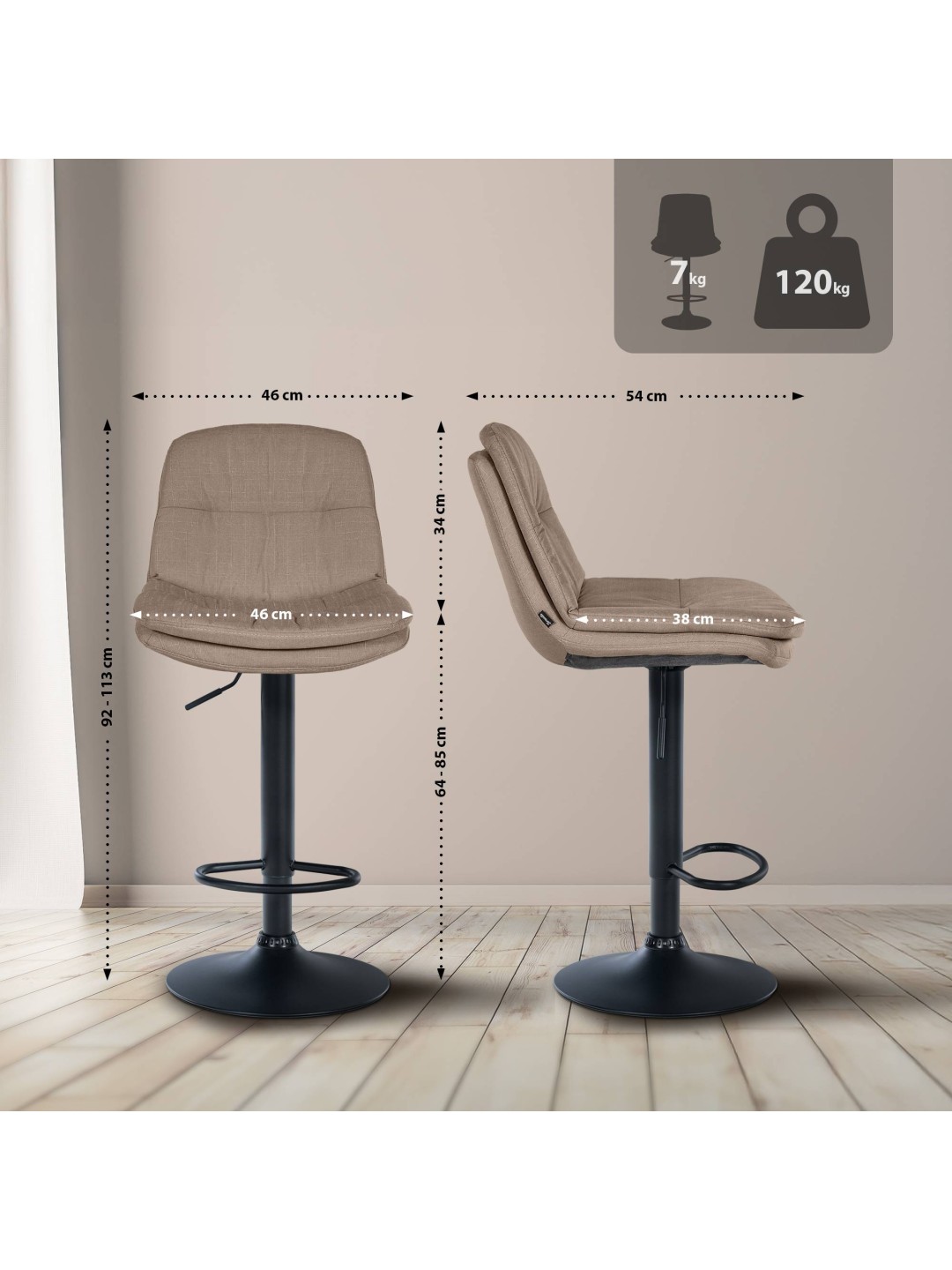 Skamlens stel og det moderigtige betræk giver taburetten et elegant udseende. Sædet er betrukket med højkvalitets og slidstærkt stof. Metalrammen er højdejusterbar og 360 graders rotationsfunktionen sikrer masser af bevægelsesfrihed.