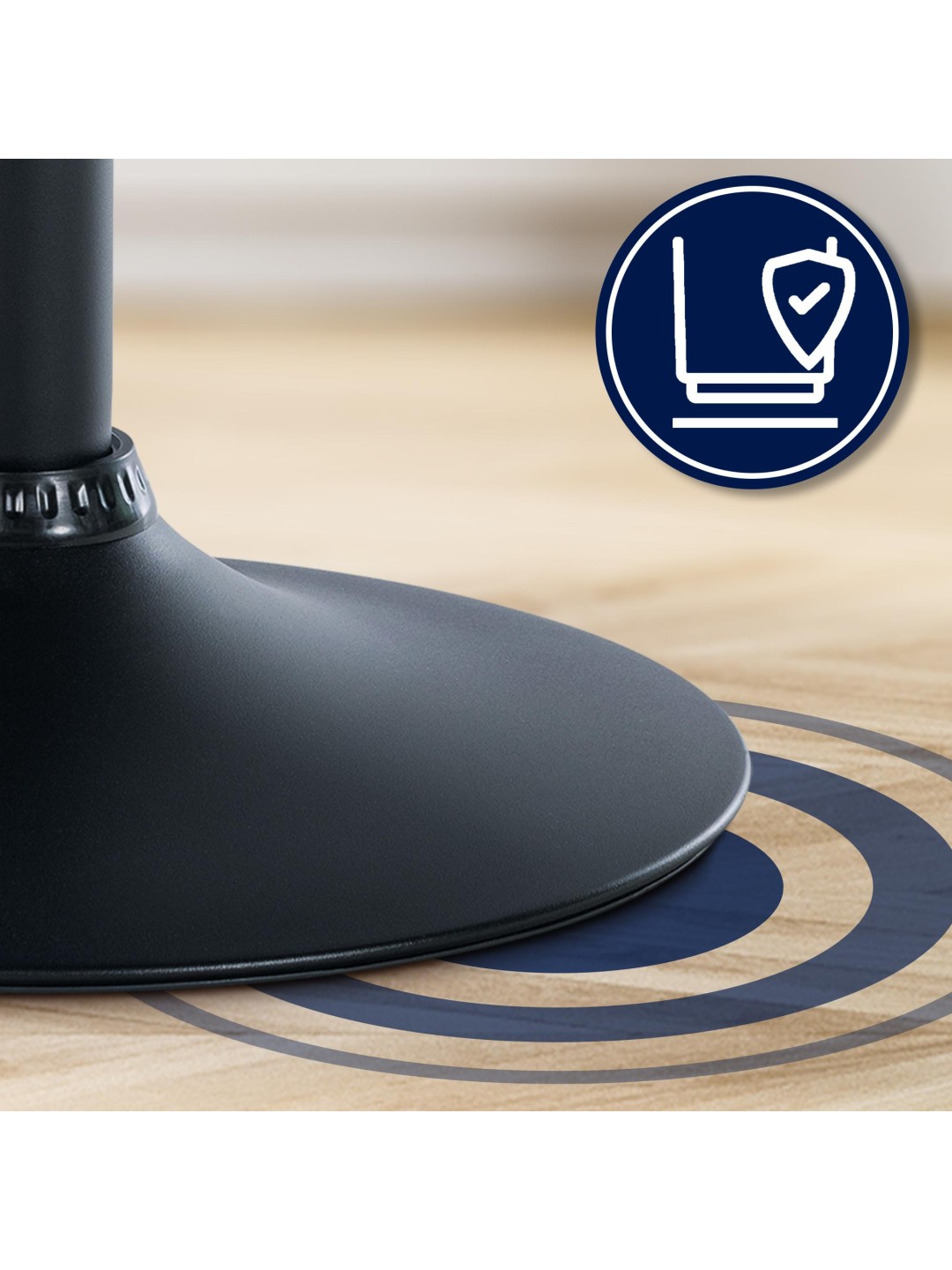 Den stabile metalramme tilbyder et sikkert stativ og en bæreevne på op til 120 kg. Gulvbeskyttelsesringen beskytter følsomme gulve.