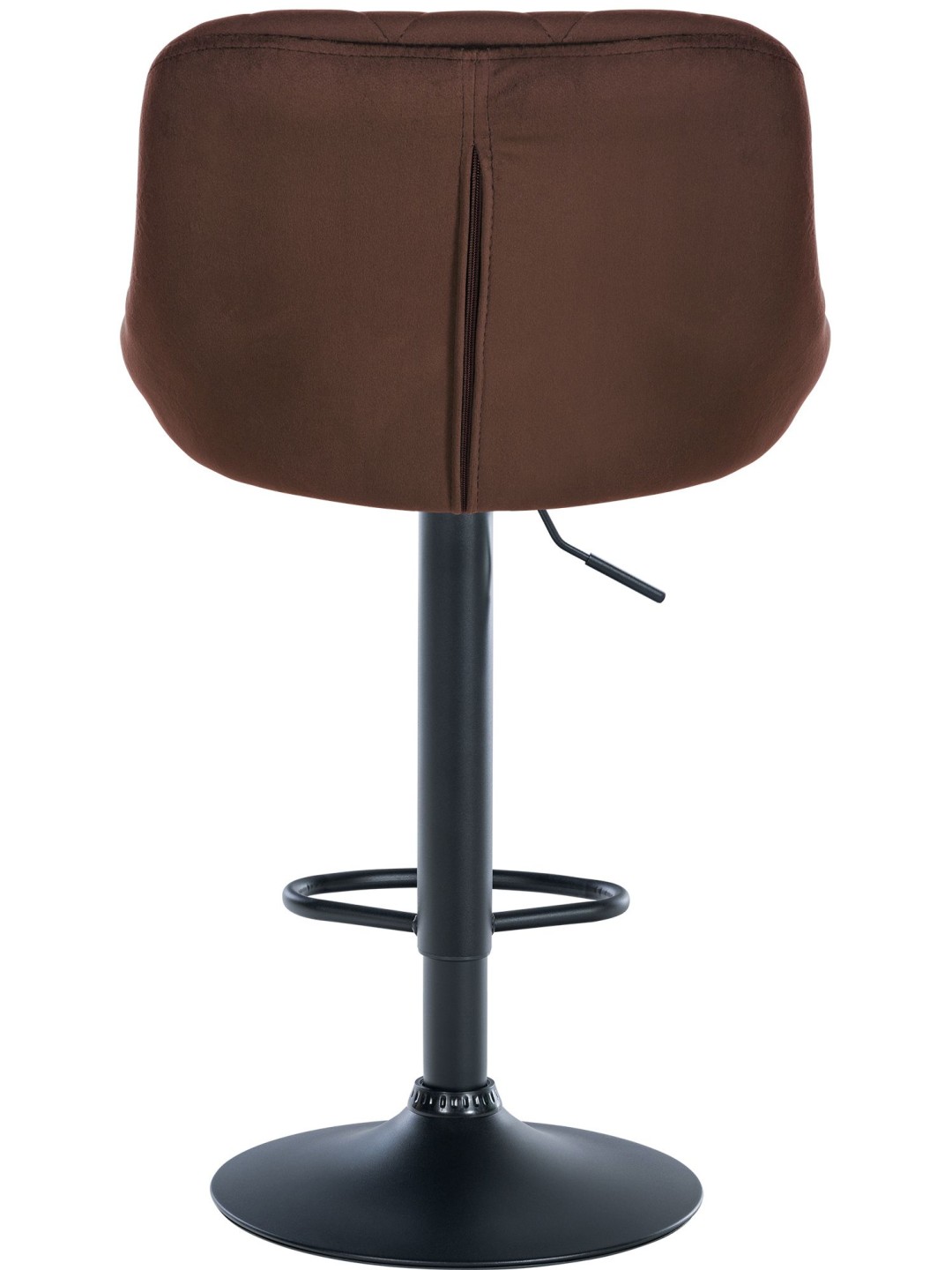 Denne stol imponerer med sit stilfulde design. Sædet er betrukket med fløjlsstof og har kunstfærdige dekorative syninger. Ved hjælp af gasliften kan denne model justeres trinløst til den ønskede højde, hvilket gør den ideel til enhver diskhøjde. Fodstøtten, der sikrer en fremragende siddekomfort, kan justeres synkront med sædets højde. Sædet kan drejes 360° med fodstøtten. Stellet er lavet af metal, der er gulvbeskyttere under trompetbunden, der forhindrer, at gulvet bliver ridset.