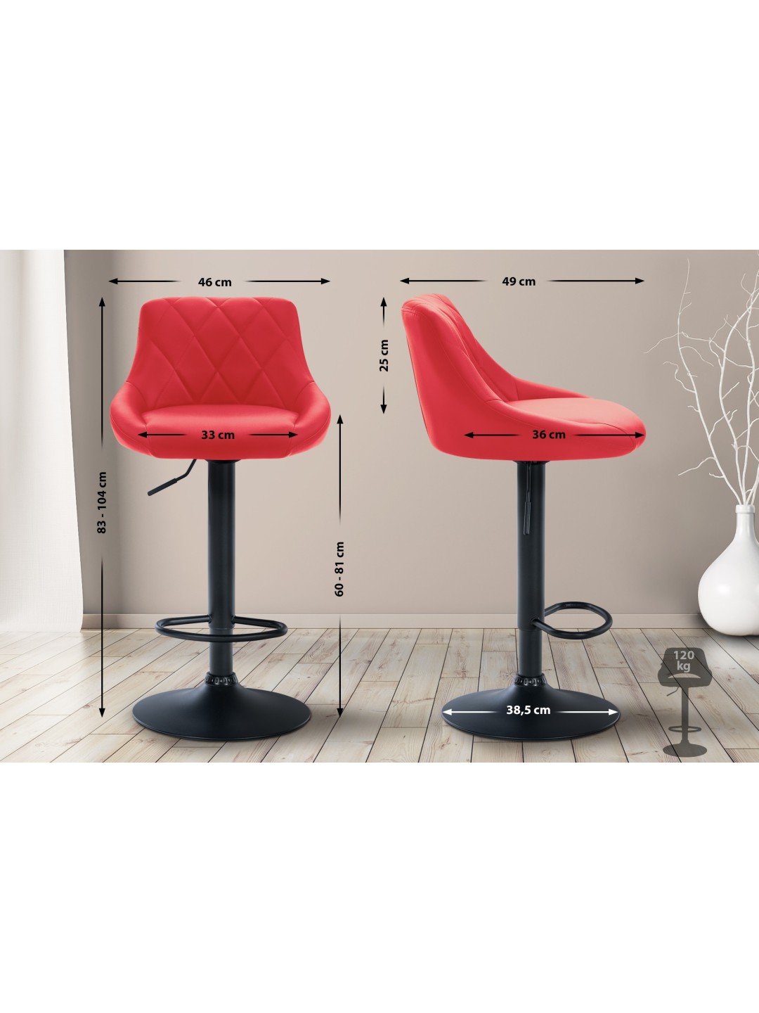 Siddeområde (BxD): 33 x 36 cm