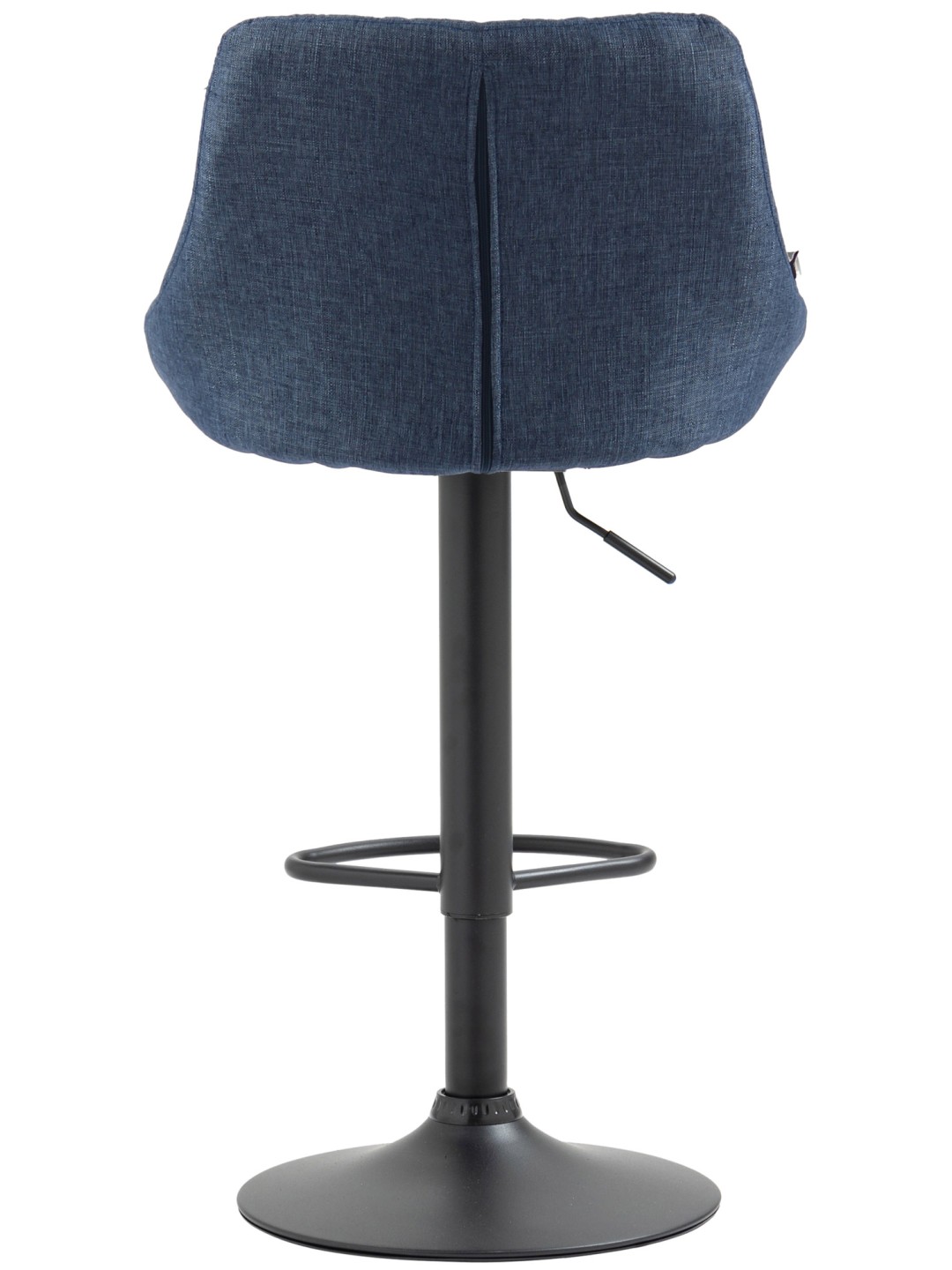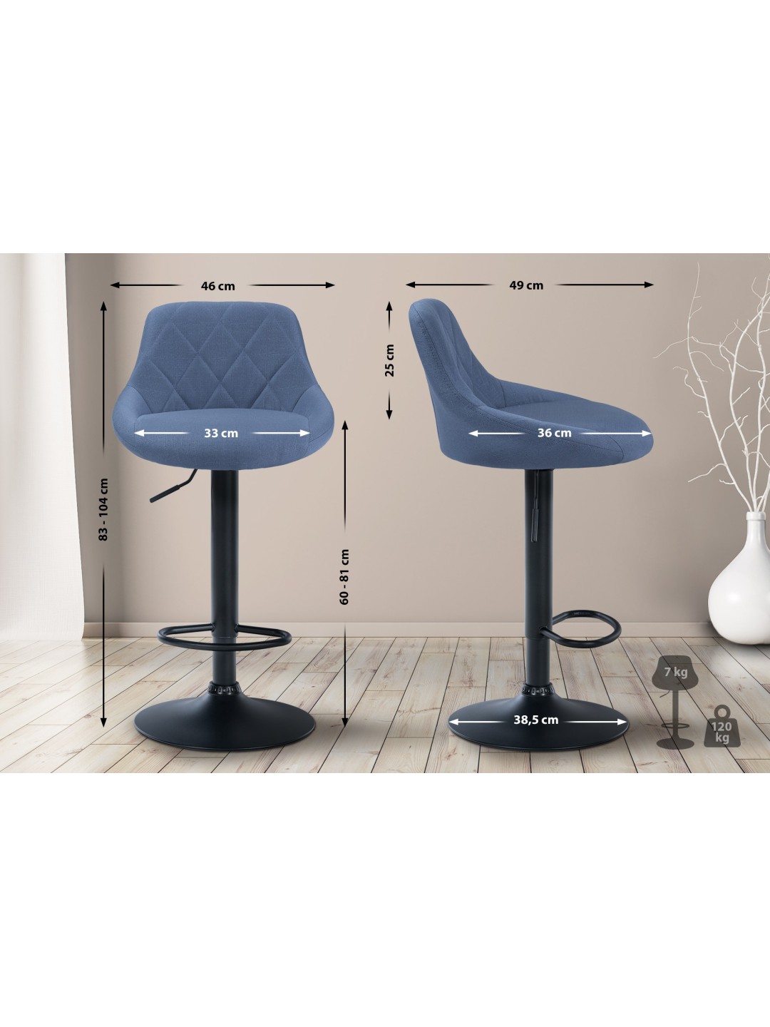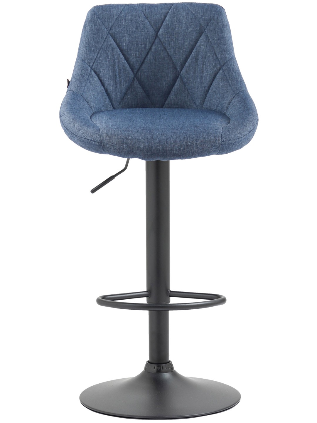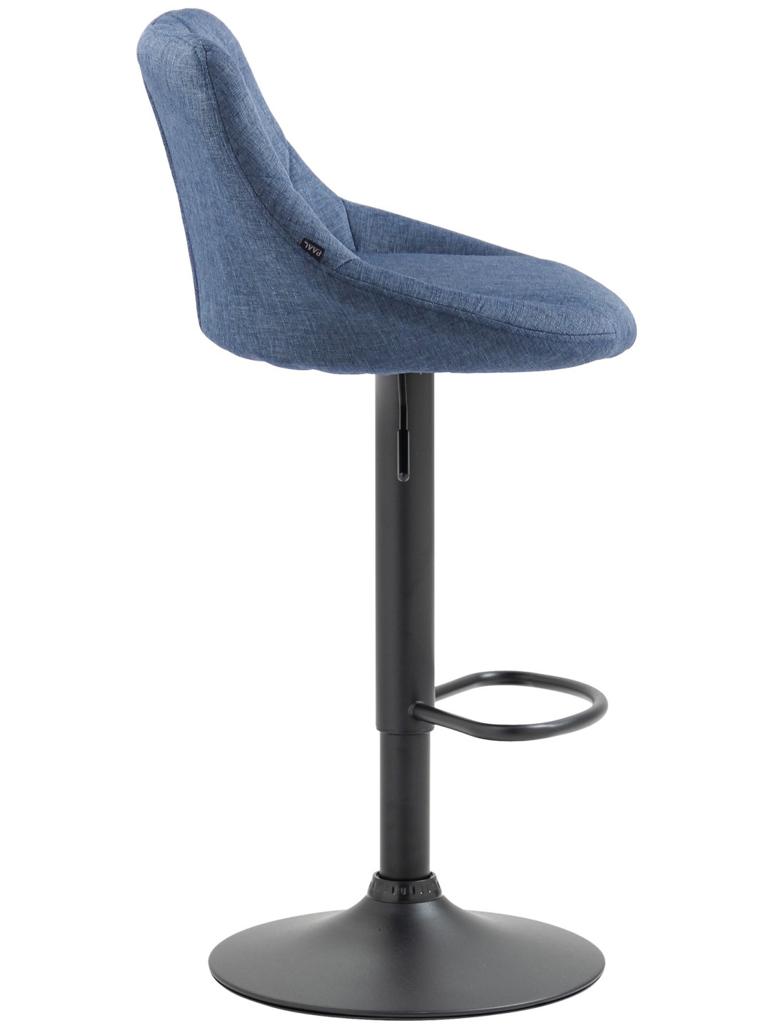 Denne stol imponerer med sit stilfulde design. Sædet er betrukket med stof og har kunstfærdige dekorative syninger. Ved hjælp af gasliften kan denne model justeres trinløst til den ønskede højde, hvilket gør den ideel til enhver diskhøjde. Fodstøtten, der sikrer en rigtig god siddekomfort, kan justeres synkront med sædets højde. Sædet kan drejes 360° med fodstøtten. Stellet er lavet af metal, der er gulvbeskyttere under trompetbunden, der forhindrer, at gulvet bliver ridset.