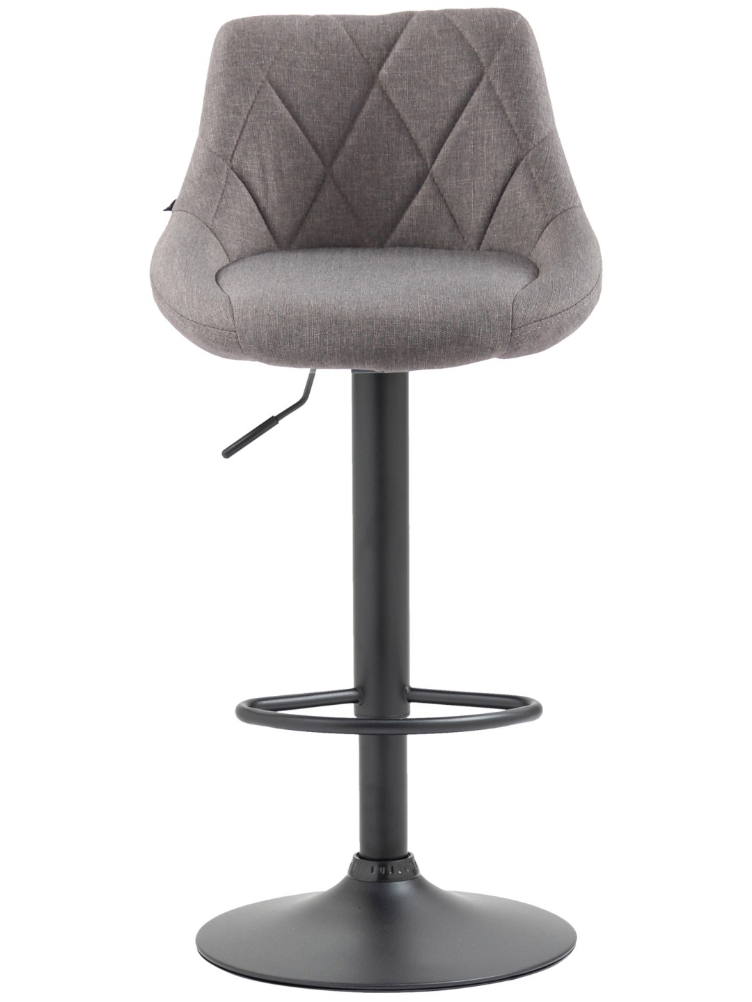 Denne stol imponerer med sit stilfulde design. Sædet er betrukket med stof og har kunstfærdige dekorative syninger. Ved hjælp af gasliften kan denne model justeres trinløst til den ønskede højde, hvilket gør den ideel til enhver diskhøjde. Fodstøtten, der sikrer en rigtig god siddekomfort, kan justeres synkront med sædets højde. Sædet kan drejes 360° med fodstøtten. Stellet er lavet af metal, der er gulvbeskyttere under trompetbunden, der forhindrer, at gulvet bliver ridset.