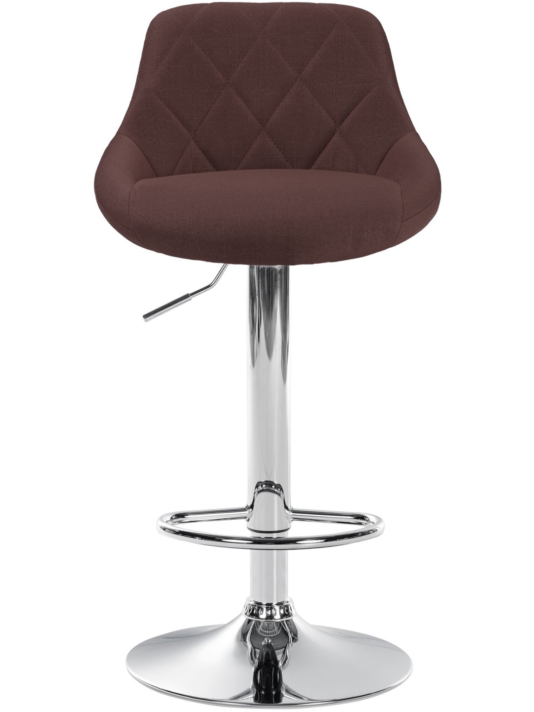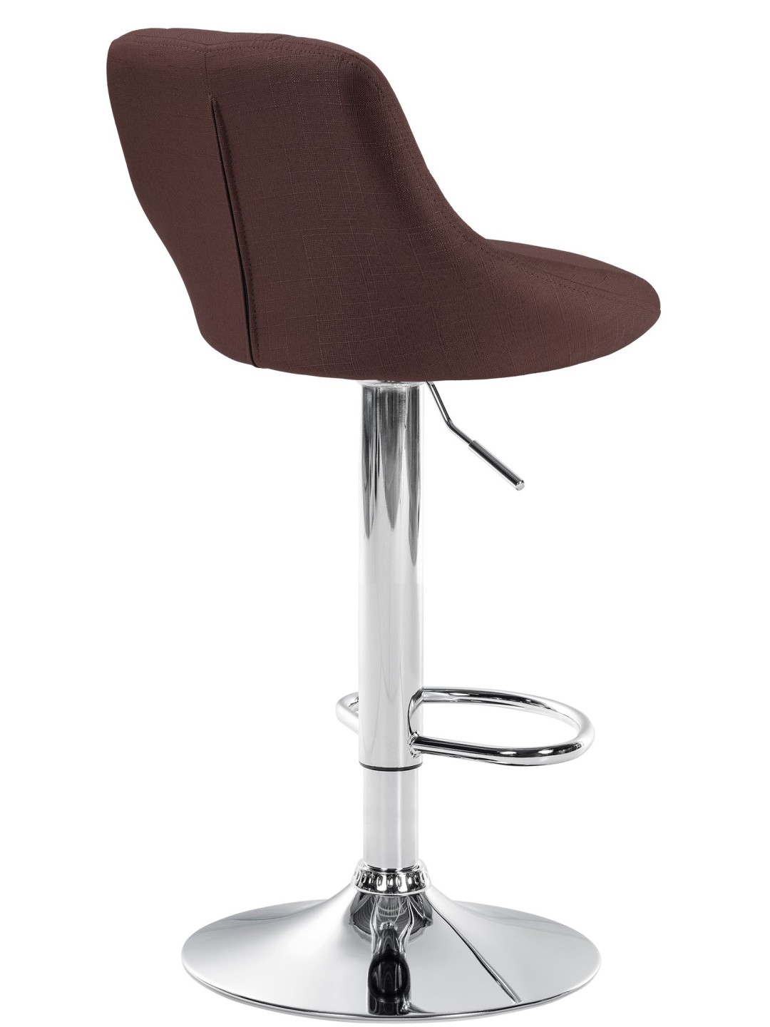 Denne stol imponerer med sit stilfulde design. Sædet er betrukket med stof og har kunstfærdige dekorative syninger. Ved hjælp af gasliften kan denne model justeres trinløst til den ønskede højde, hvilket gør den ideel til enhver diskhøjde. Fodstøtten, der sikrer en rigtig god siddekomfort, kan justeres synkront med sædets højde. Sædet kan drejes 360° med fodstøtten. Stellet er lavet af metal, der er gulvbeskyttere under trompetbunden, der forhindrer, at gulvet bliver ridset.