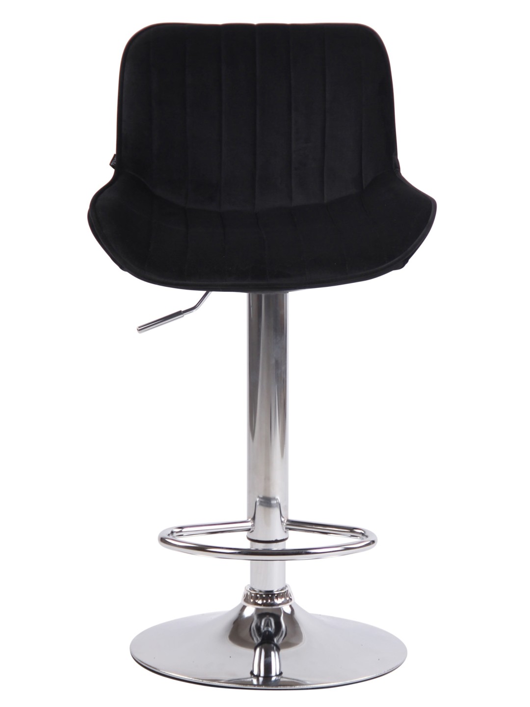 Denne barstol giver ethvert rum et eksklusivt look og imponerer ikke kun med sine fremragende siddeegenskaber, men også med sit moderne design. Sædet har et letplejet fløjlsbetræk. Ved hjælp af gasliften kan denne model justeres trinløst til den ønskede højde, hvilket gør den ideel til enhver diskhøjde. Fodstøtten, der sikrer en rigtig god siddekomfort, kan justeres synkront med sædets højde. Sædet kan drejes 360° med fodstøtten. Stellet er lavet af enten krom-look metal, hvidt eller sort metal. Der er også gulvbeskyttere under trompetbunden for at forhindre, at overflader bliver ridset.