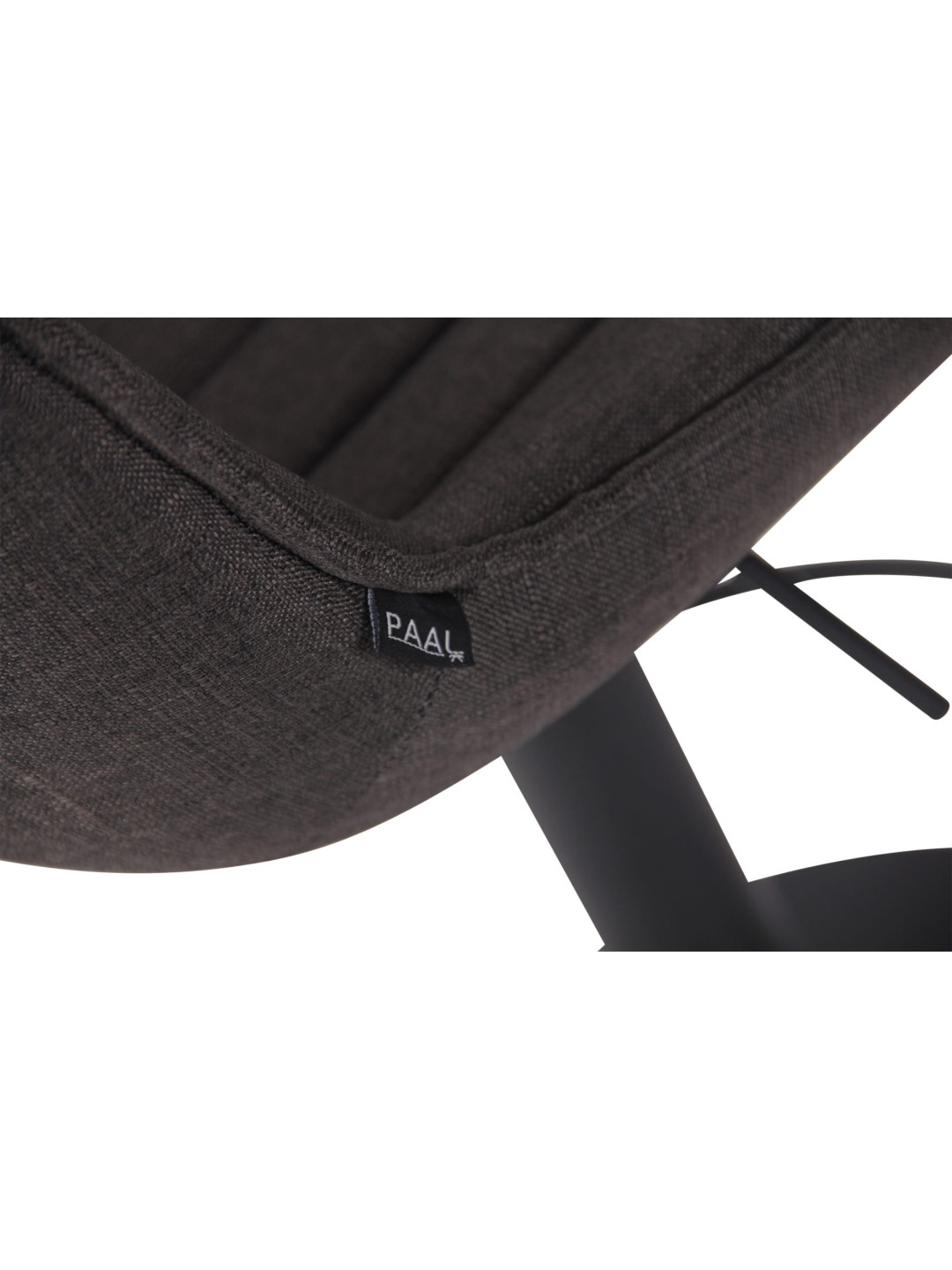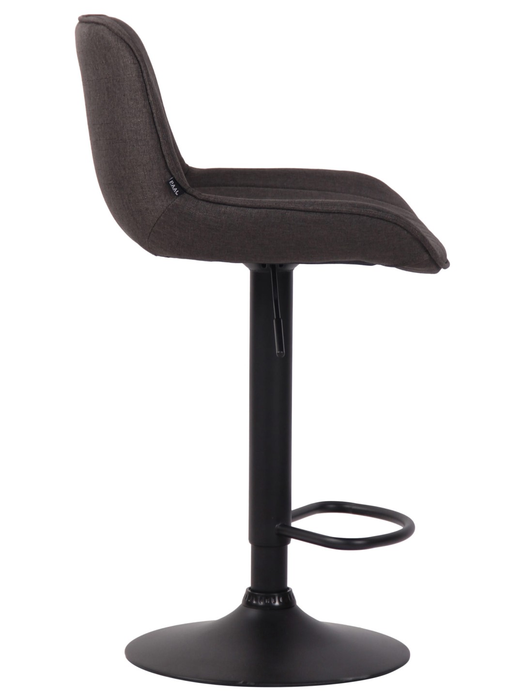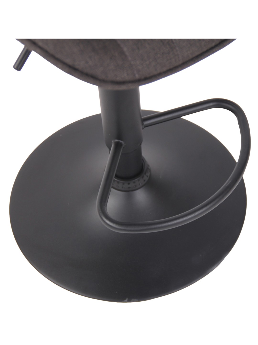 Denne barstol giver ethvert rum et eksklusivt look og imponerer ikke kun med sine fremragende siddeegenskaber, men også med sit moderne design. Sædet er beklædt med et let pleje stofbetræk. Ved hjælp af gasliften kan denne model justeres trinløst til den ønskede højde, hvilket gør den ideel til enhver diskhøjde. Fodstøtten, der sikrer en rigtig god siddekomfort, kan justeres synkront med sædets højde. Sædet kan drejes 360° med fodstøtten. Stellet er lavet af enten krom-look metal, hvidt eller sort metal. Der er også gulvbeskyttere under trompetbunden for at forhindre, at overflader bliver ridset.
