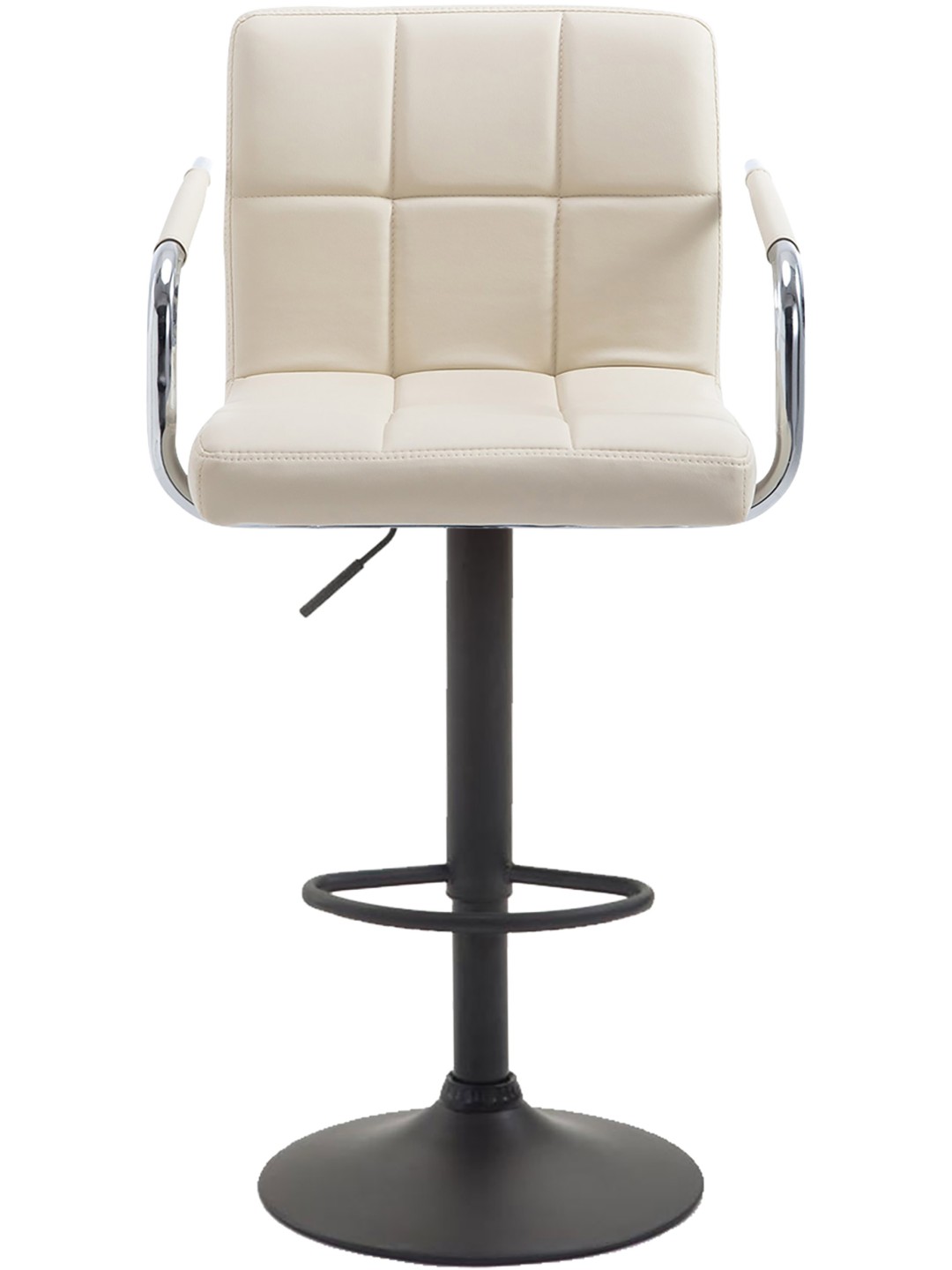Denne barstol er et ægte blikfang - moderne, men tidløs. Den har ryglæn, armlæn og fodstøtte, så du kan sidde behageligt en hel aften. Sædet kan drejes 360° og den ergonomiske form tilpasser sig perfekt til ryggen. Overfladen i imiteret læder er meget nem at rengøre, hvis noget går galt. Takket være gasliftens trinløst justerbare højde kan denne barstol bruges universelt og er velegnet til alle diskhøjder. Materialesammensætning: 100 % polyurethan