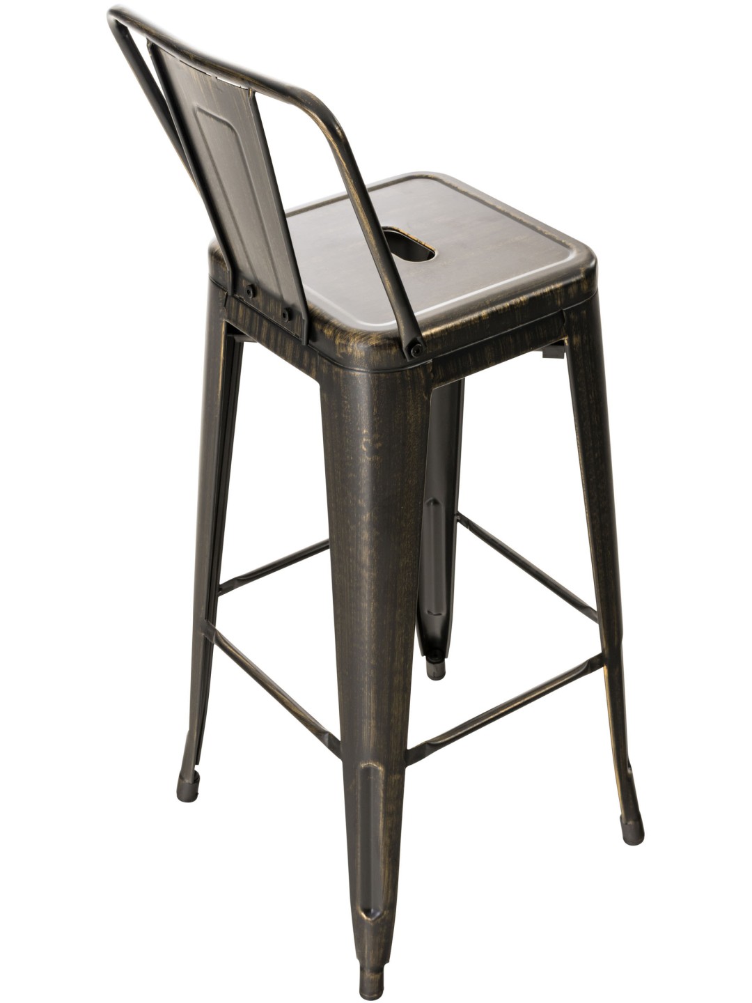 Denne barstol lavet af pulverlakeret metal viser altid ægte stabilitet. Der er tværstænger både mellem benene og under sædet, som sikrer en høj stabilitet - førstnævnte fungerer også som en behagelig fodstøtte.