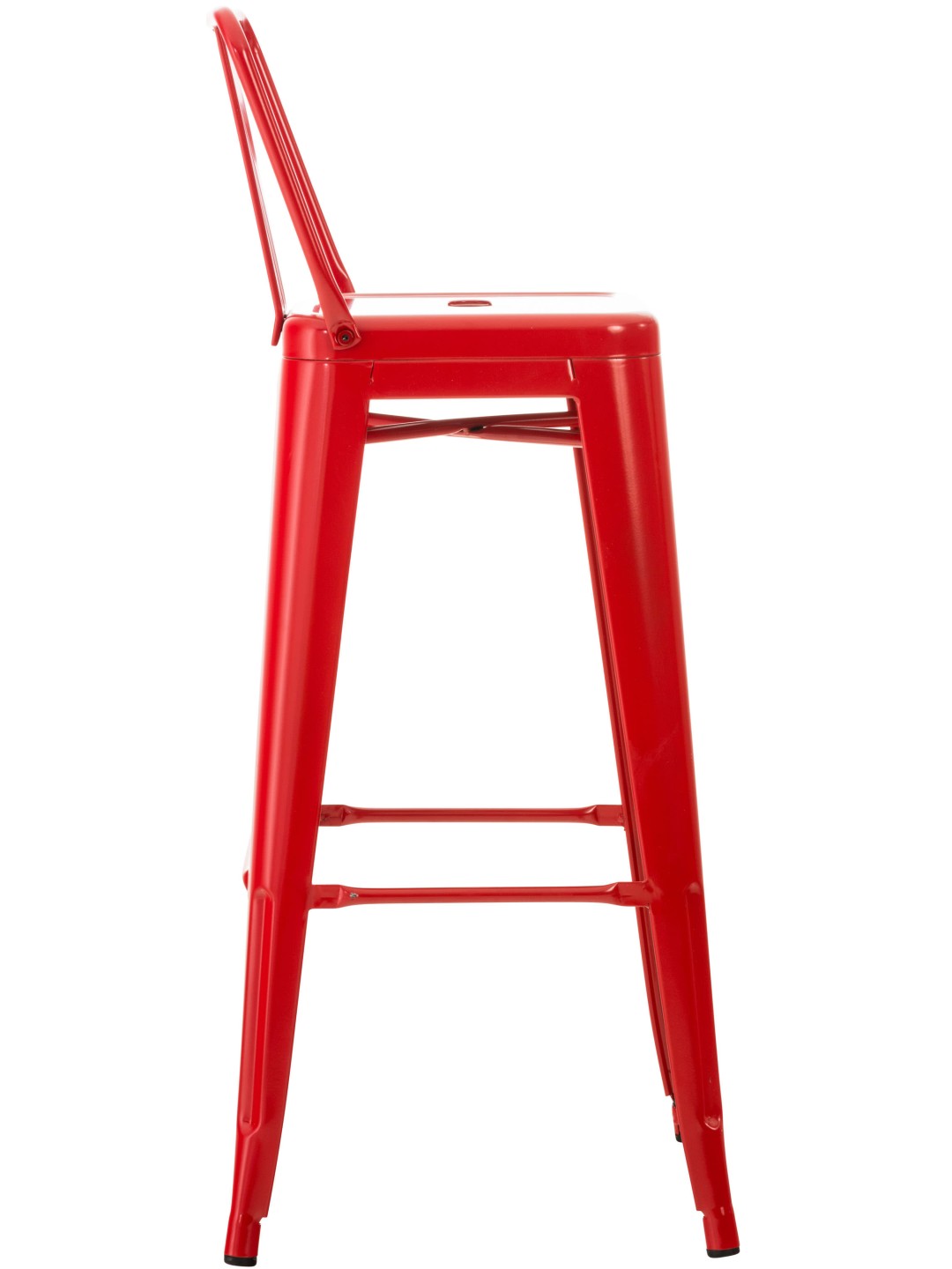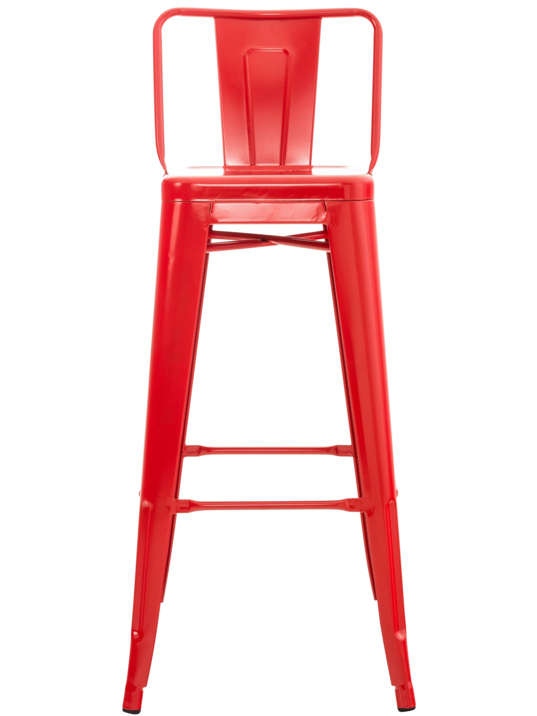 Denne barstol lavet af pulverlakeret metal viser altid ægte stabilitet. Der er tværstænger både mellem benene og under sædet, som sikrer en høj stabilitet - førstnævnte fungerer også som en behagelig fodstøtte.