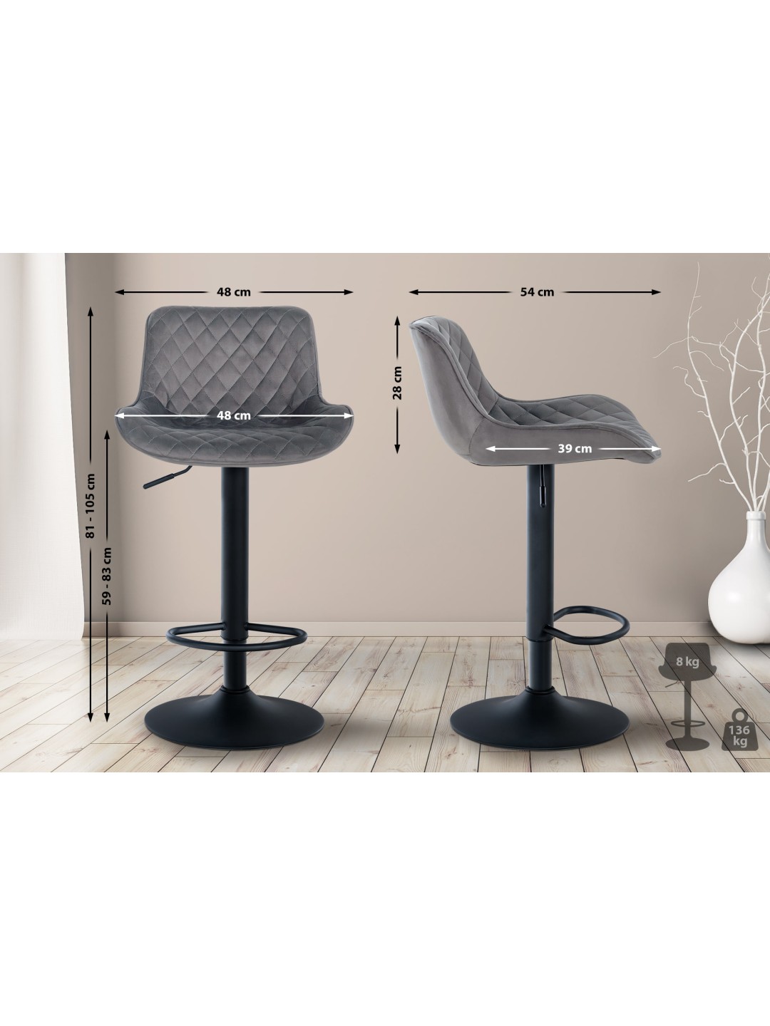 Med sine forskellige materialer passer denne bordskammel perfekt ind i stuen, spisestuen, køkkenet og endda i cateringvirksomheder. Takket være det brede udvalg af materialer og farver bliver vores model et ægte blikfang ved enhver bar.