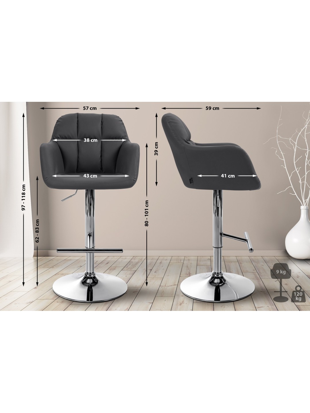 Barstolen Natoma imiteret læder er kendetegnet ved sit funktionelle design og siddekomfort. Højdejusteringen fra 97 til 118 cm samt en bredde på 57 cm og en dybde på 59 cm gør det muligt at tilpasse den til en bred vifte af bordhøjder. 43 x 41 cm sæde og ryglæn er designet til at give støtte og komfort. Armlæn og en fodstøtte på trompetbunden tilføjer funktionaliteten, mens gulvbeskytteren forhindrer skader på overfladen. Med en vægt på 9 kg og en bæreevne på op til 120 kg er Natoma barstolen et robust sæde. 360° rotationsfunktionen fremmer også mobilitet og fleksibilitet.